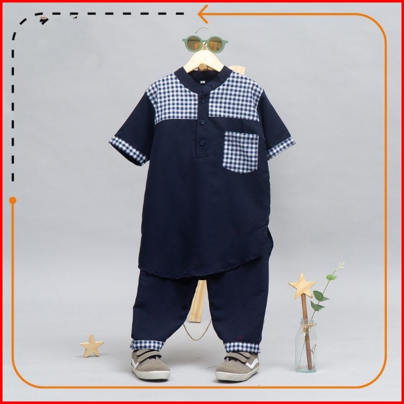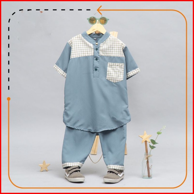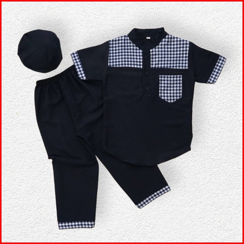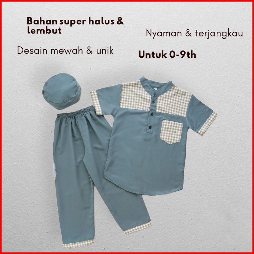 Pakaian Muslim Koko Kurta Anak 0-9 Tahun Set Baju Celana Peci Dubai