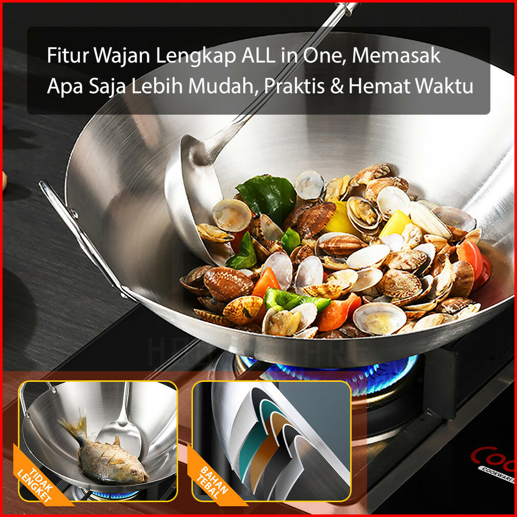 Hugo Wajan Penggorengan Stainless Tebal Anti Lengket Kuali Serbaguna Wokpan Premium Quality