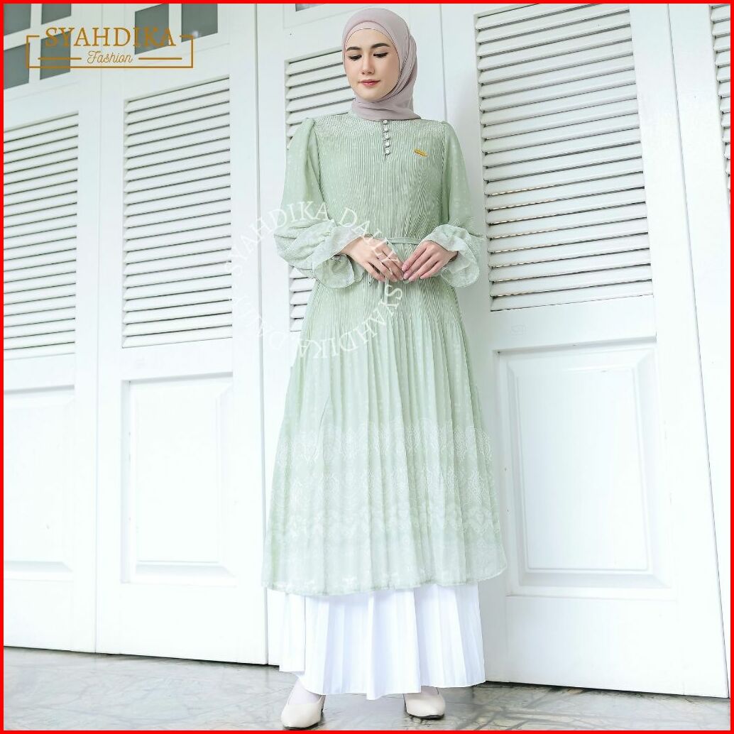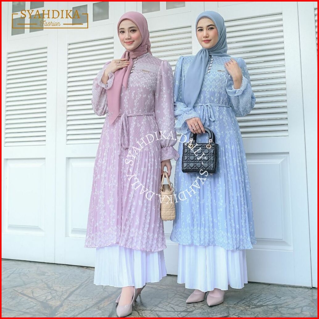 Syafira Long Tunik Plisket By Syahnaz Midi Dress Terbaru Kekinian