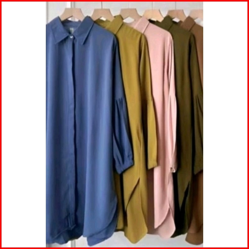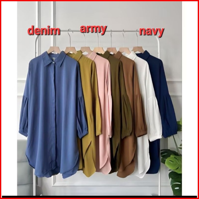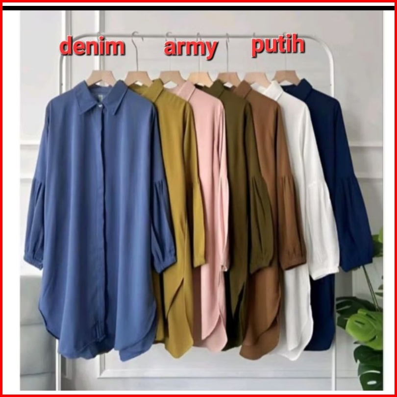 Kianara Tunik Polos Lengan Balon Crinkle Airflow Atasan Oversize Wanita Muslim