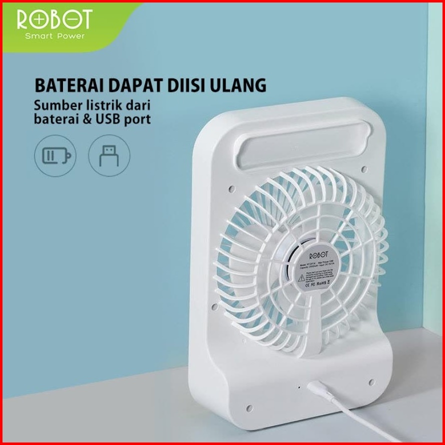 Robot Rt-bf14 Portable Fan 2000mah Kipas Angin 5 Inch Usb Rechargeable Led Garansi Original Resmi