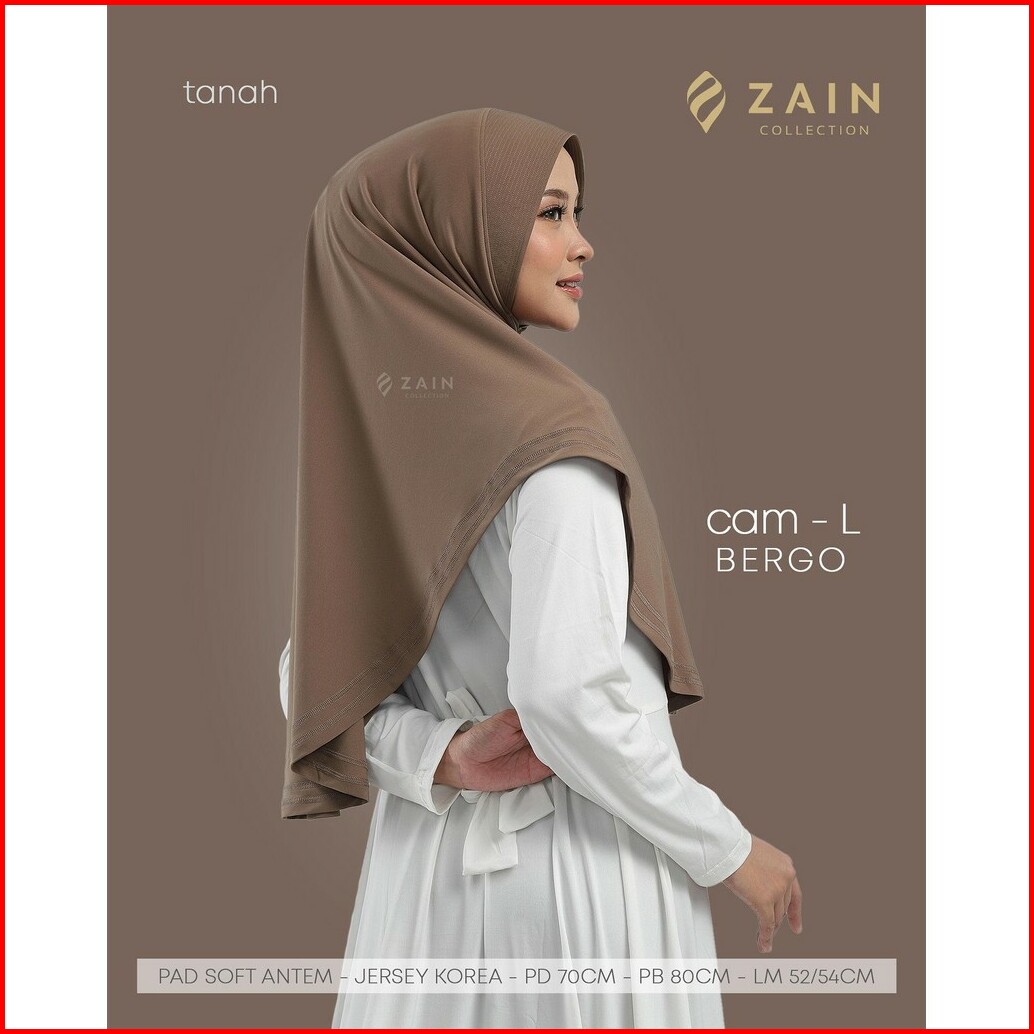 Zain Hijab Bergo Cam Size L Jilbab Oval Variasi Overdek Ped Soft Anti Tembem High Quality By Zain Collection