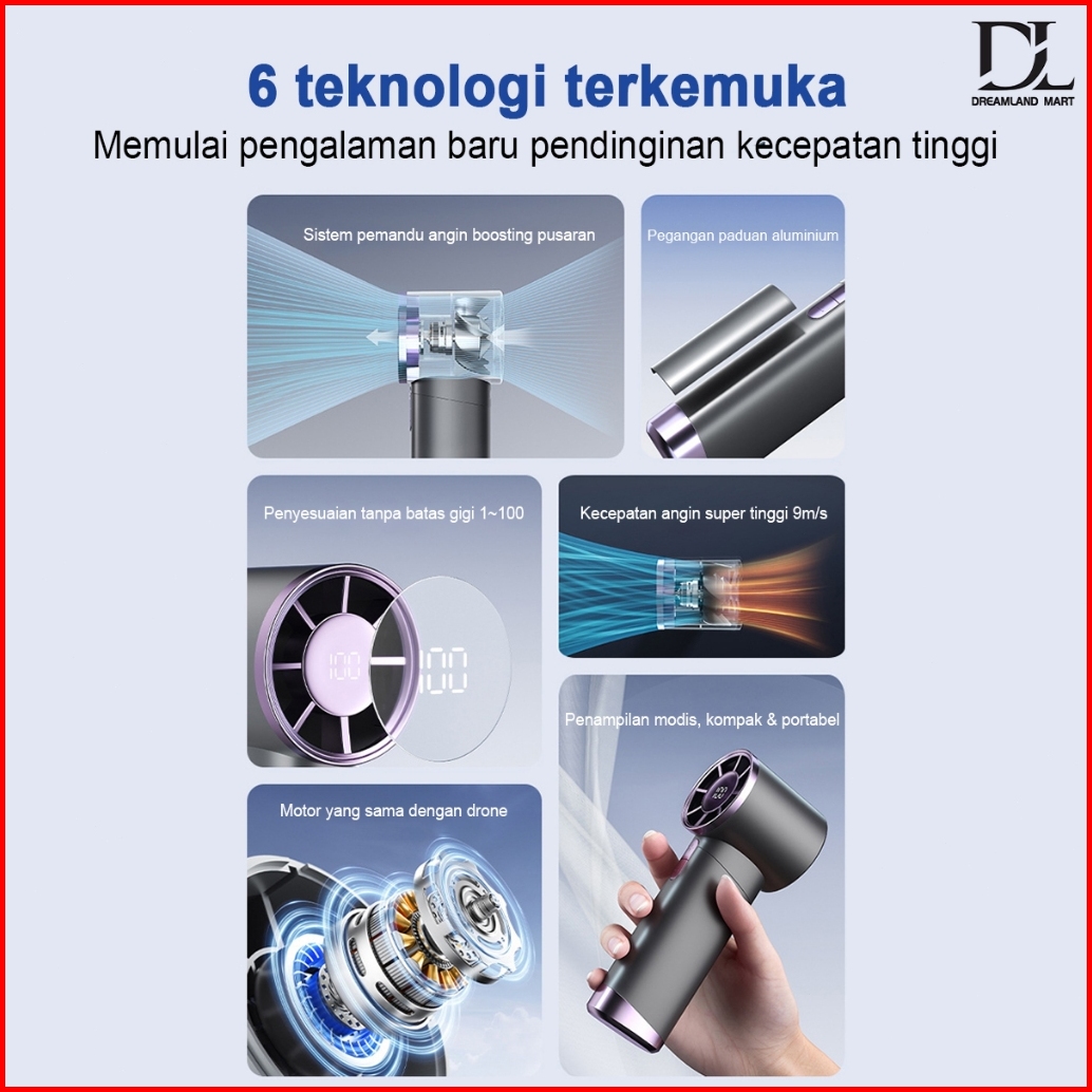 Dl Mini Kipas Strong Wind 100 Gear Wind Angin Digital Display Kipas Genggam Turbin Berkecepatan Tinggi Portabel Yang Kua