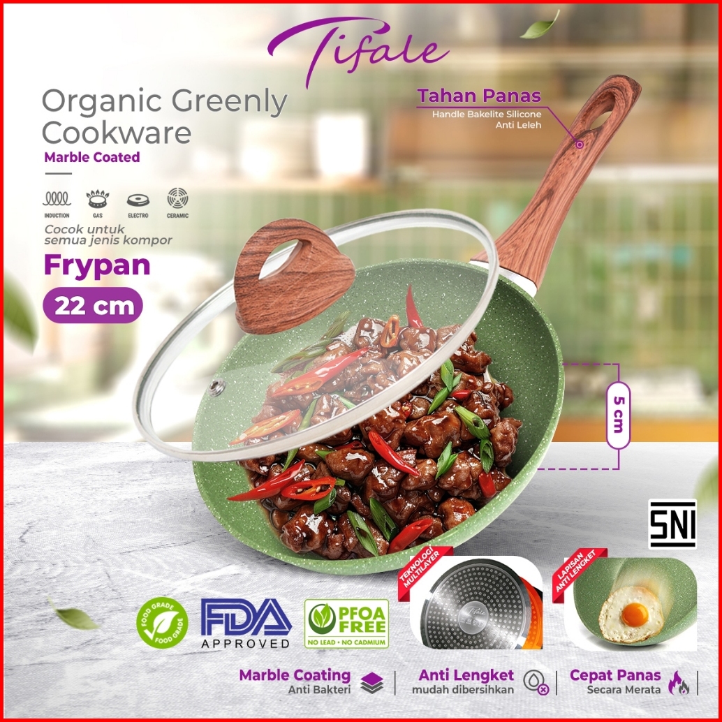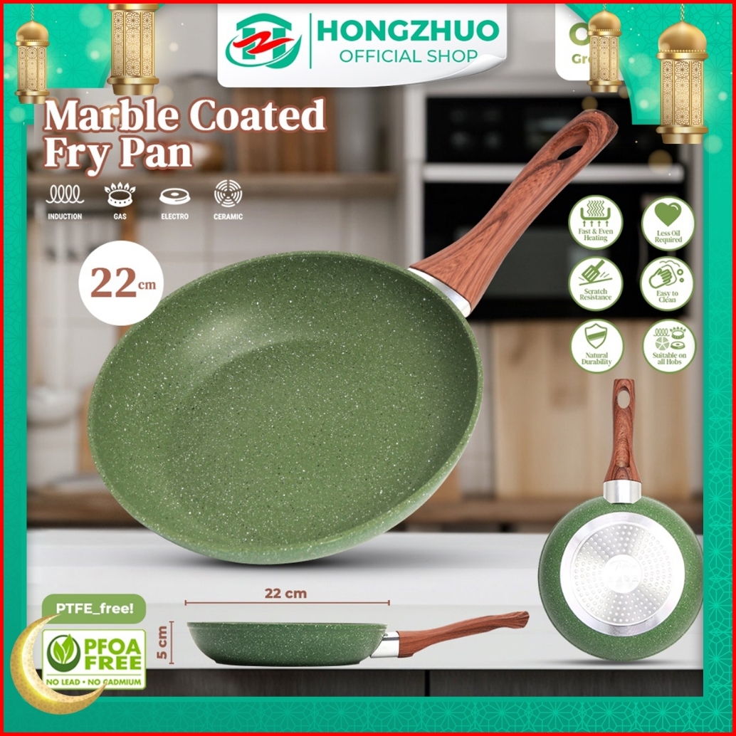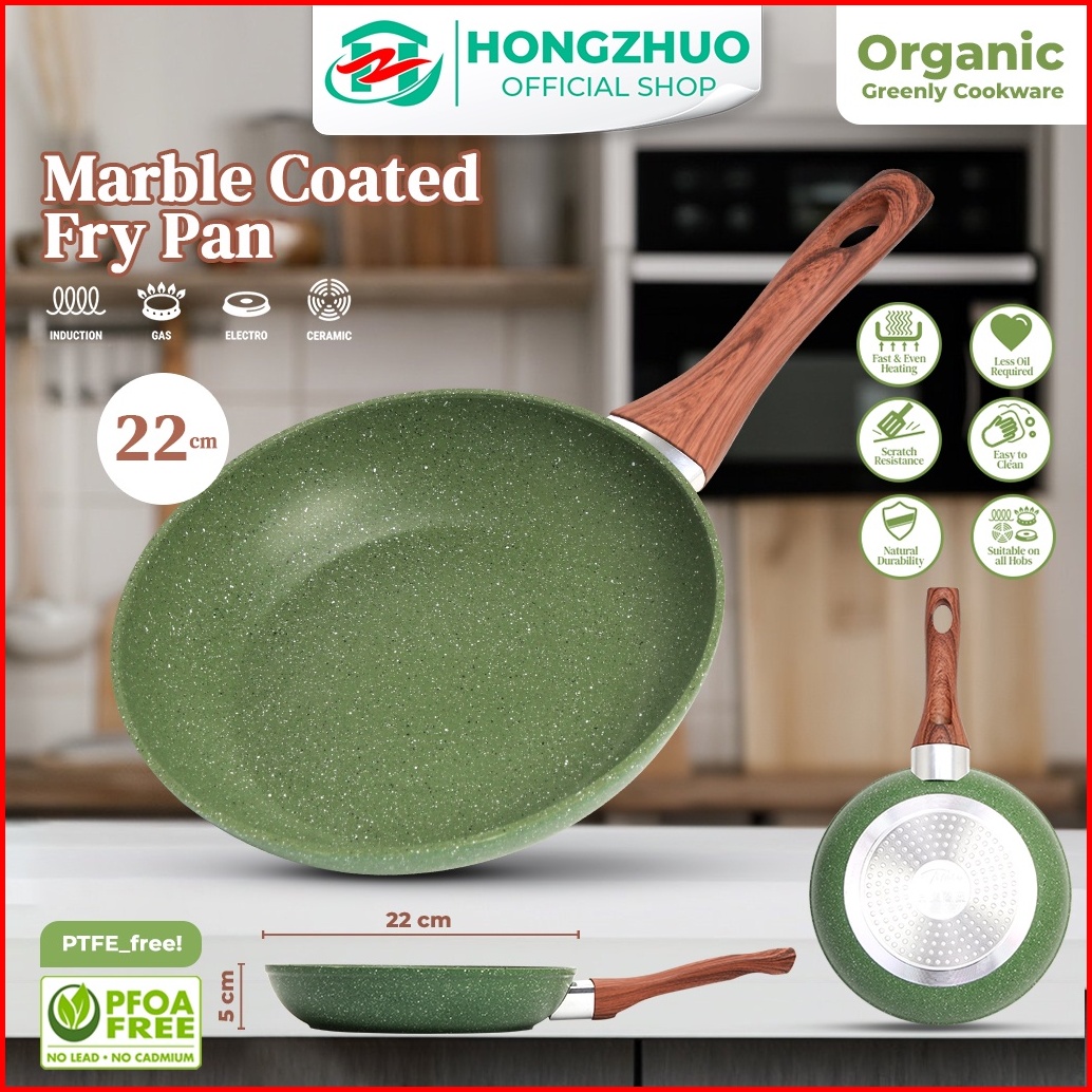 Tifale By Hongzhuo Organic Greenly Cookware Fry Pan 22cm Marble Coated Anti Lengket Wok Pan