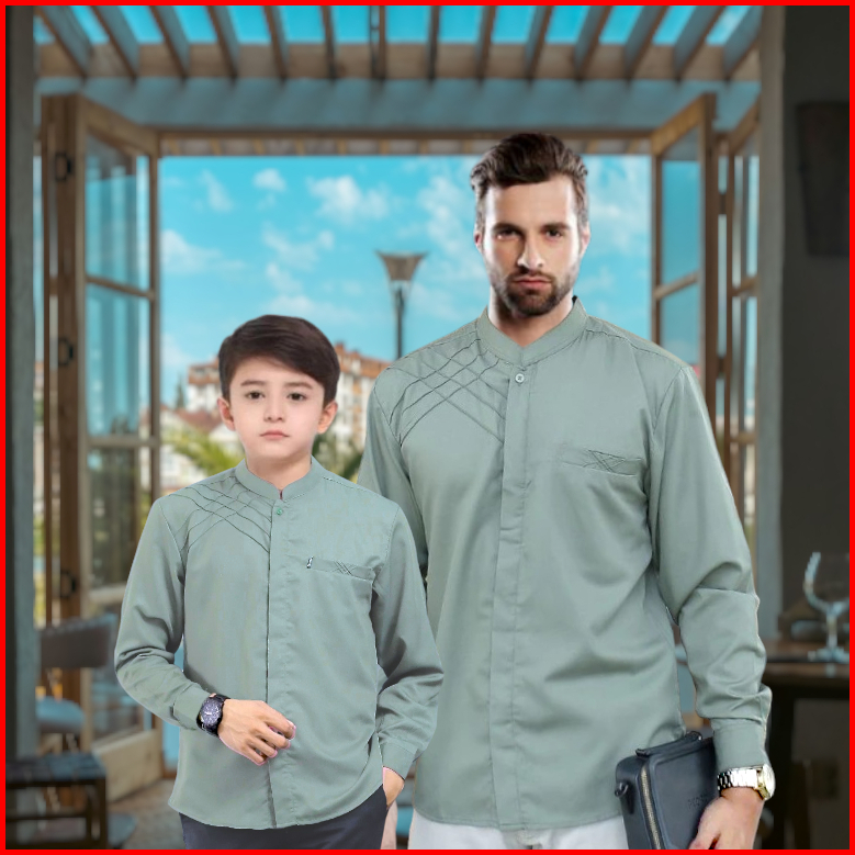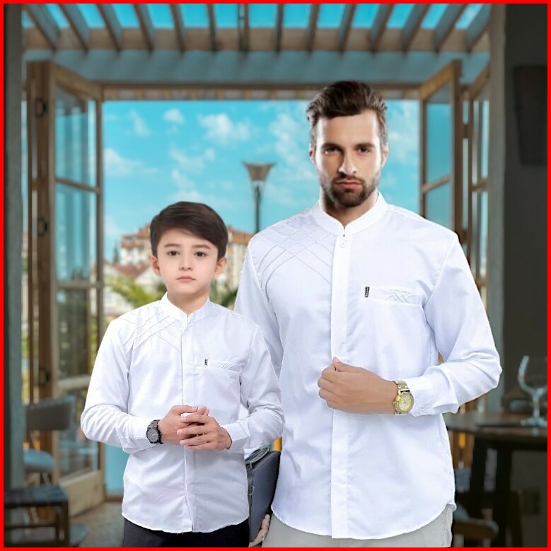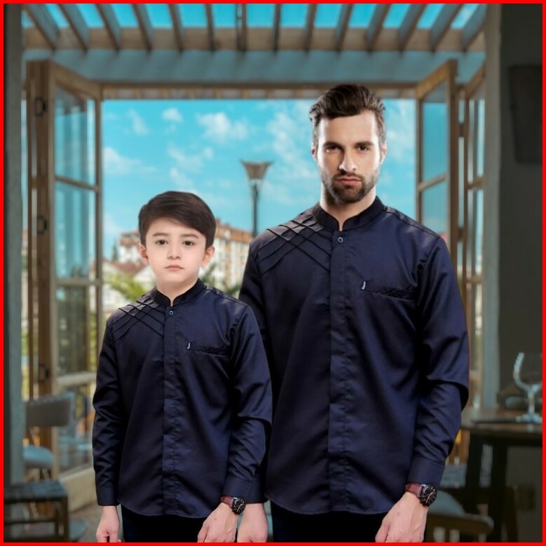 Baju Koko Couple Ayah Dan Anak Laki Laki Harga Terpisah Kemeja Kurta Kerah Mandarin Lengan Panjang Bahan Katun Vito Sign