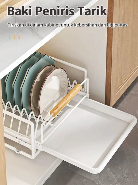 Rak Piring Tarik 2 Tingkat Kapasitas Besar Multifungsi untuk Kolong Dapur