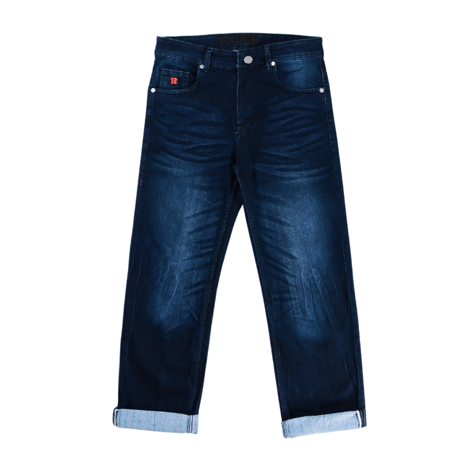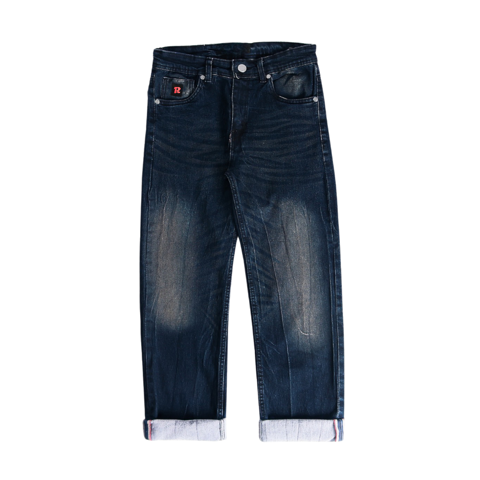 RAKERBE - Celana Jeans Standard Pria Strech Denim Reguler Cowok Accent Selvedge Whisker Melar Sunforized