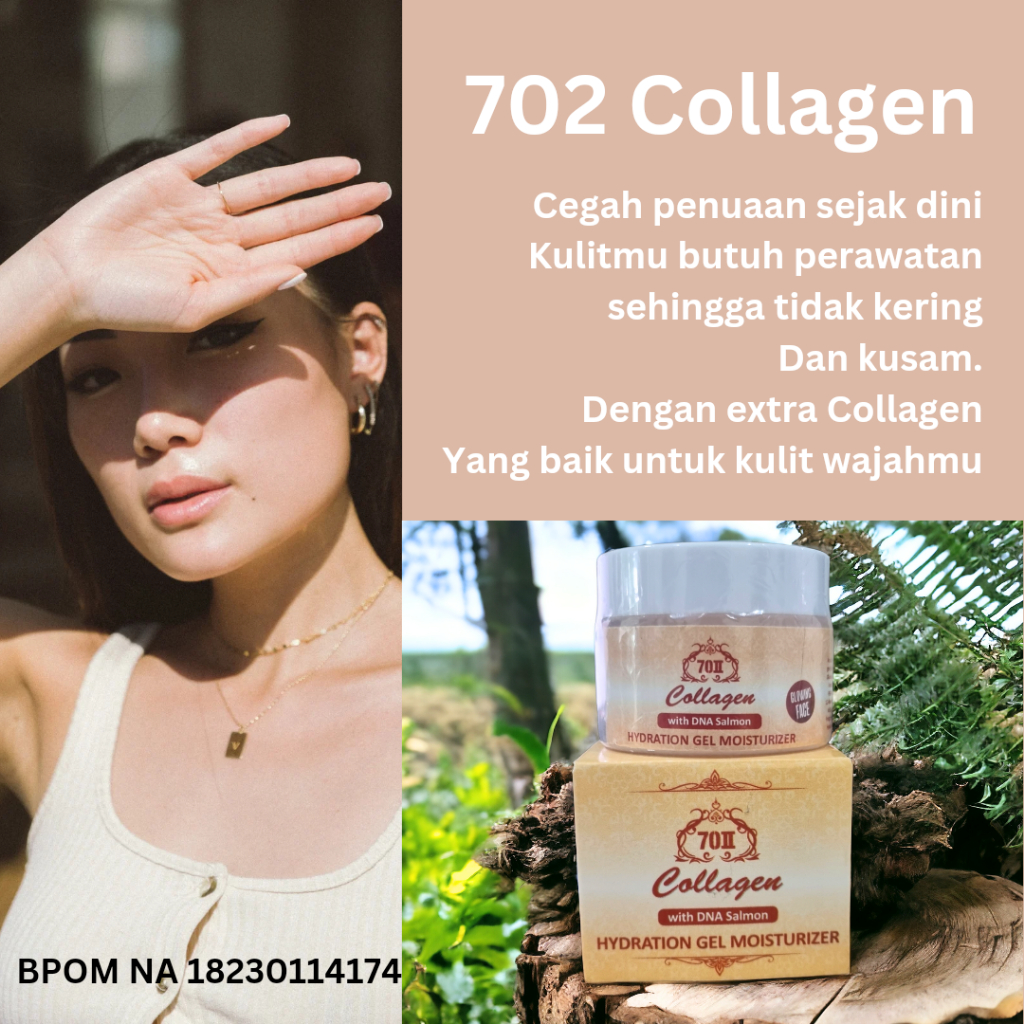 Gel Moisturizer whitening face 702 anti kerut dan keriput collagen with DNA salmon 50 gram BPOM pemutih wajah Niacinamid