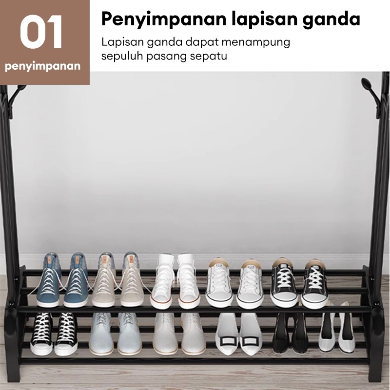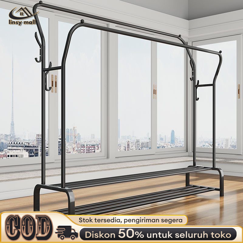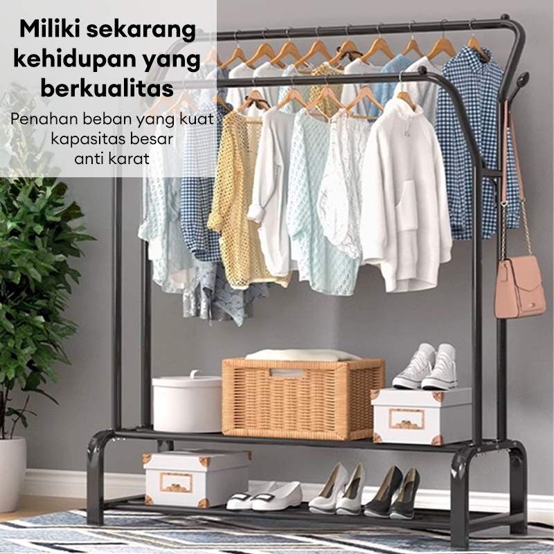 Rak Baju Gantung Portable Gantungan Baju Berdiri Besi Kuat Rak Gantungan Baju Aesthetic Hitam/Putih