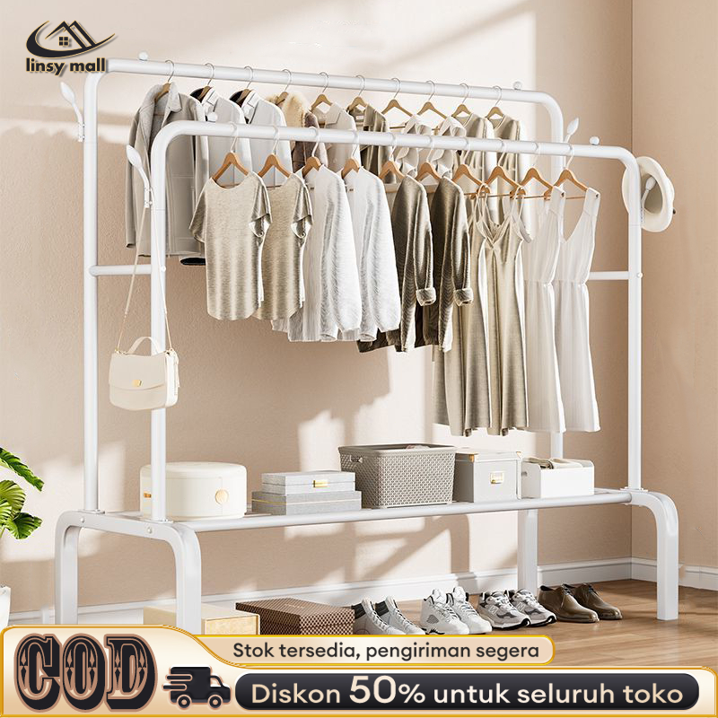 Rak Gantungan Baju Gantungan Baju Berdiri Besi Kuat Gantungan Baju Estetik 115x55x145cm