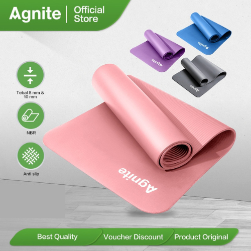 Agnite Matras Yoga Olahraga GYM Senam Lantai Karpet Tikar Matt NBR Tebal 8mm 10mm Panjang 61 cm Tebal Anti Slip - NHL48