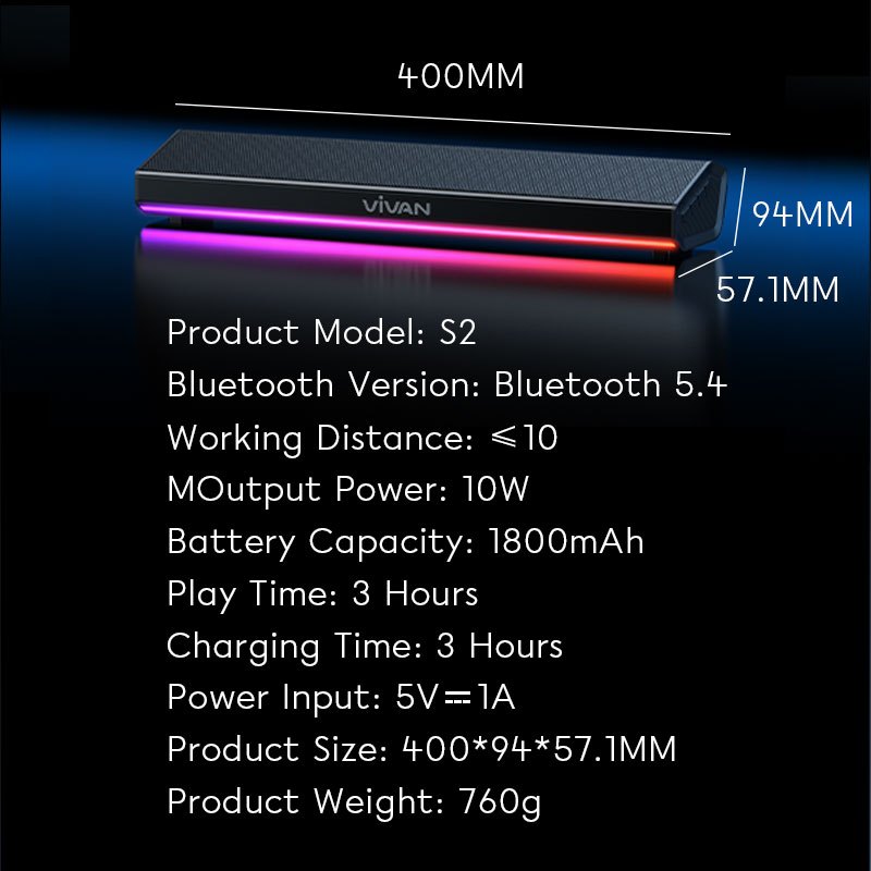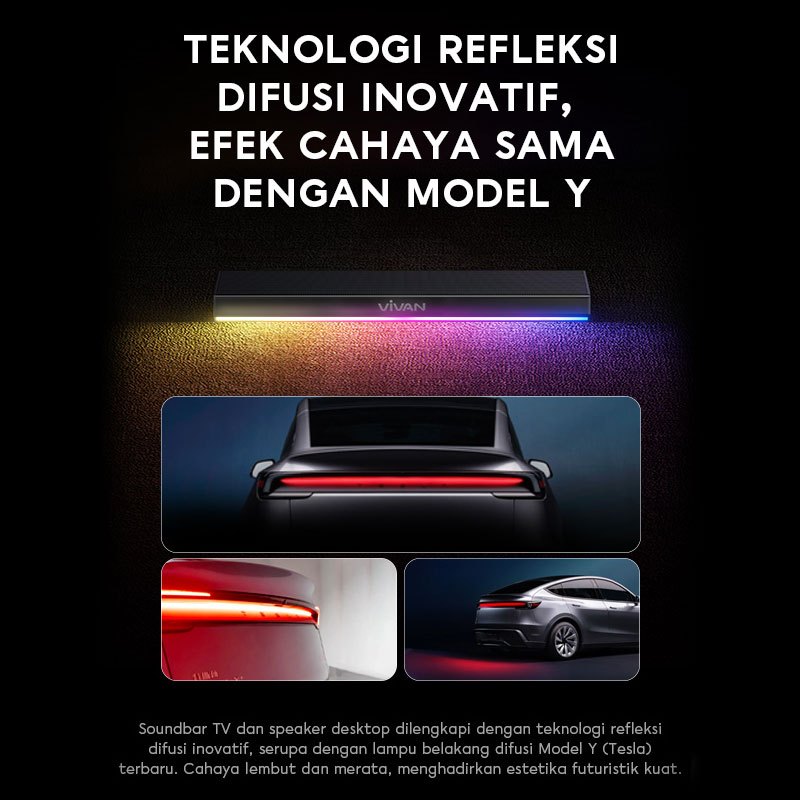 VIVAN Bluetooth Soundbar TV Super Bass RGB LED Lampu TWS Interkoneksi BT 5.4 S2 Garansi 12 Bulan