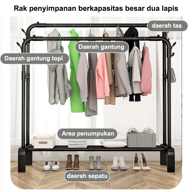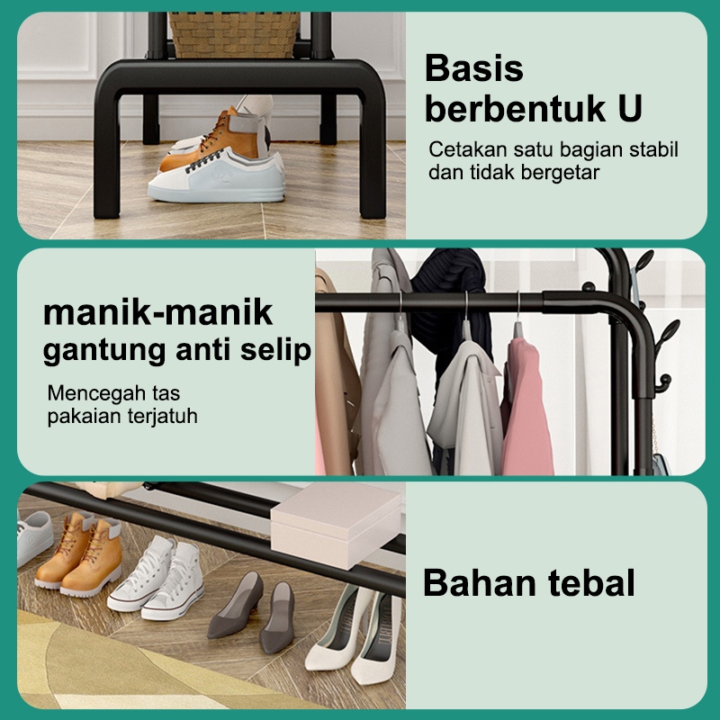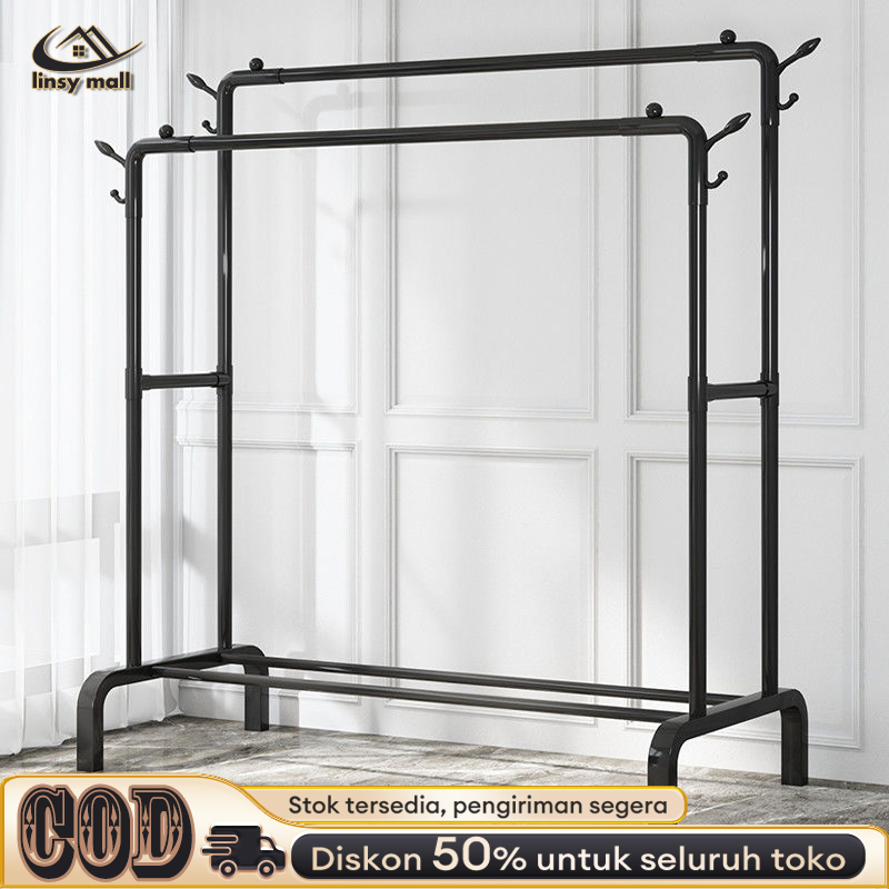 Rak Baju Gantung Besi Rak Gantungan Baju Berdiri Stand Hanger Display Butik Bazar Hitam/Putih