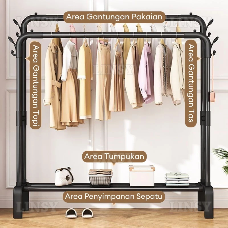 Rak Baju Gantung Portable Rak Gantungan Baju Besi Berdiri Rak Gantungan Baju Aesthetic 110/130/150CM
