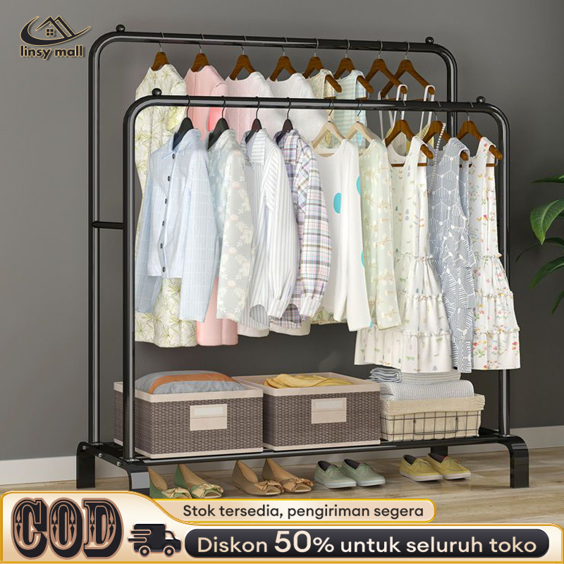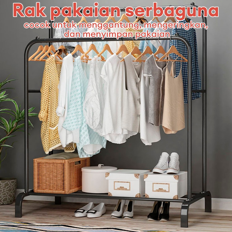 Stand Hanger Gawang Double Besi Kuat Putih Hitam Butik Display Gawangan Gantungan Baju