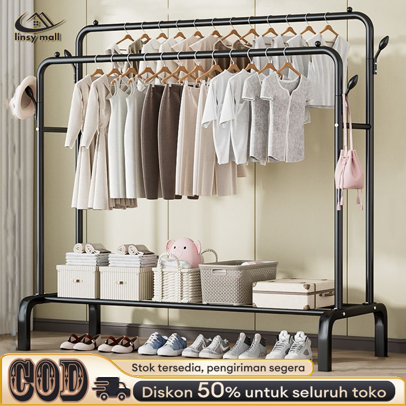 Rak Gantungan Baju Besi Berdiri 150CM Stand Hanger Minimalis Rak Gantungan Baju Aesthetic