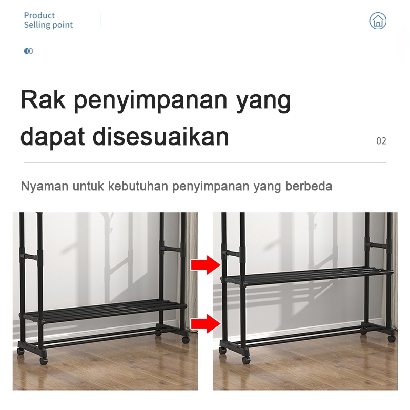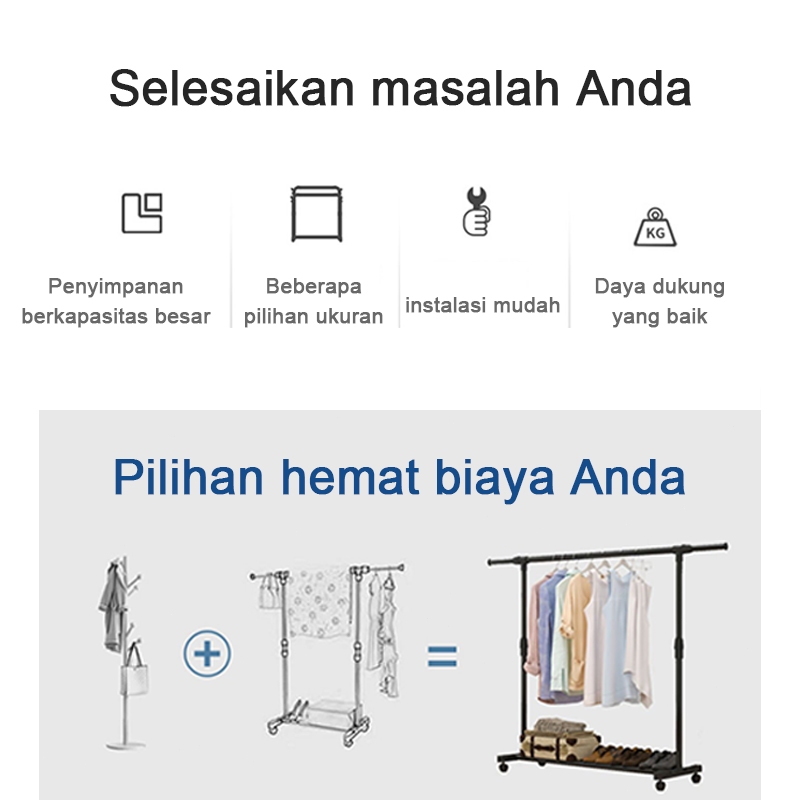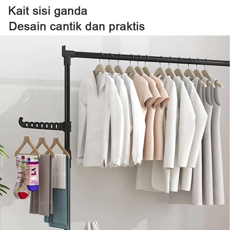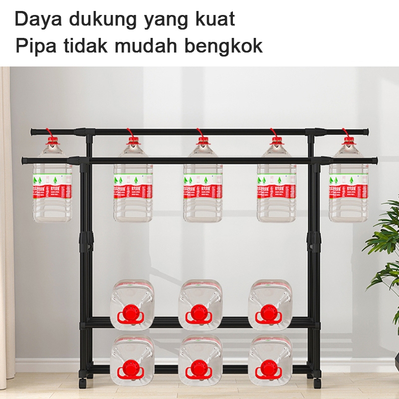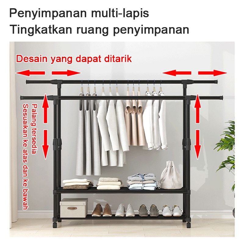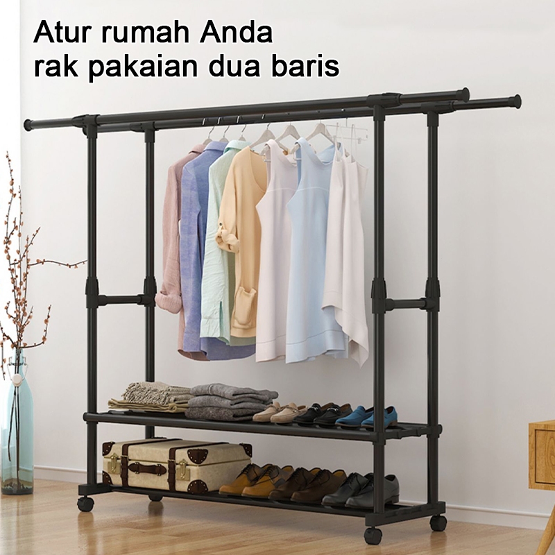 Stand Hanger Double Gantungan Baju Berdiri Rak Baju Serbaguna 2 Susun Dengan 4 Roda 150x40x155cm