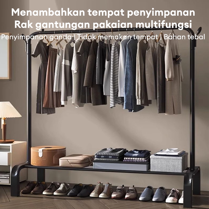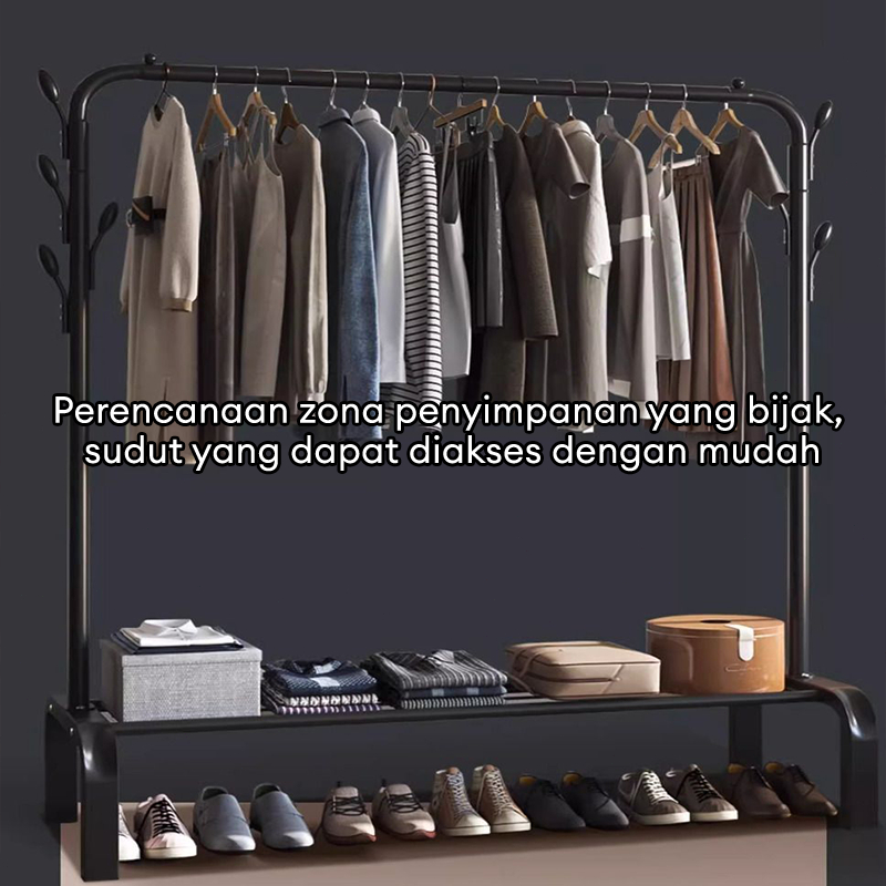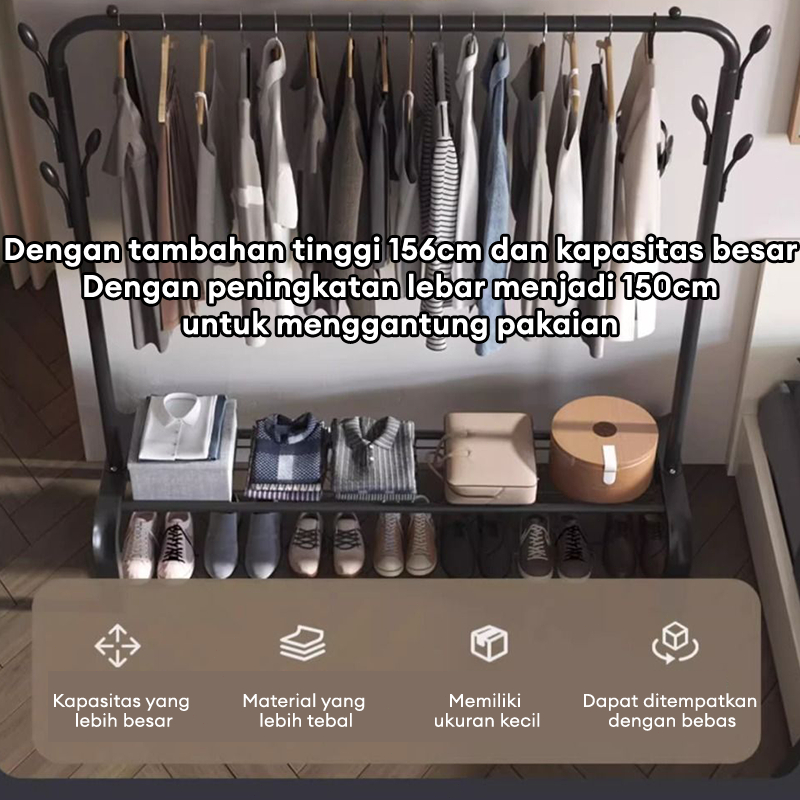 Stand Hanger Gawang Single Rak Gantungan Baju 150 cm Rak Gantungan Baju Besi Dengan 8 Kait