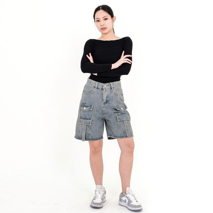 Jorts Pants Wanita Celana 3/4 Wanita Jeans Jorts Jeans Cargo Celana Jeans Cargo Pendek