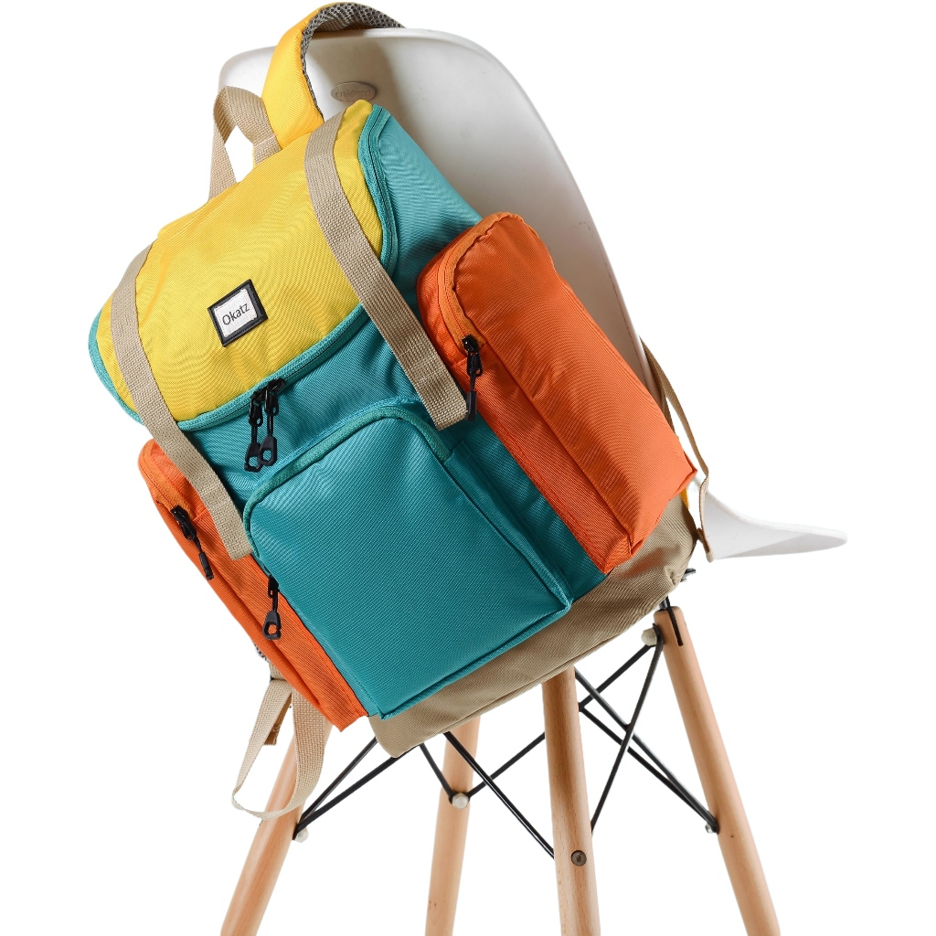 okatz labbi backpack anak - Tas sekolah anak SD laki laki perempuan - FREE POUCH COIN colour block backpack cordura