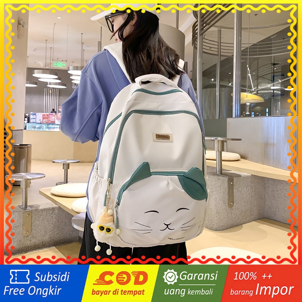 WYK166 Tas Ransel Wanita Korea Sekolah Kuliah Face Kitty Backpack School MKT