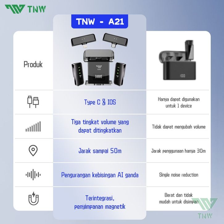 TNW A21 Mic Wireless Dual Lavalier Isi Ulang