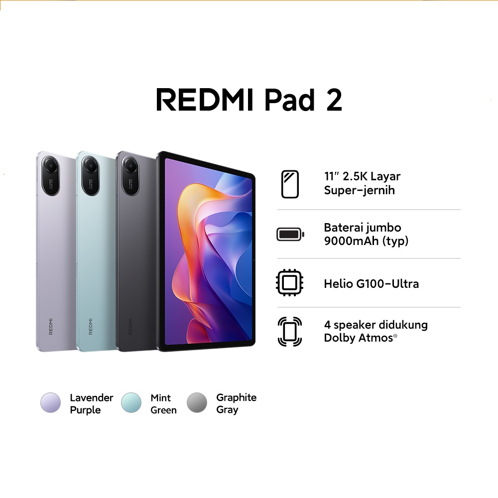Xiaomi Redmi Pad 2 (4/128G) | 11" 2.5 Layar Super-jernih | Baterai jumbo 9000mAh Helio G100-Ultra |