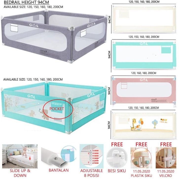 GOL Baby Bedrail Pagar Kasur Pengaman Baby Pembatas Kasur Pagar Bayi Strong & Ekstra Extra Tall Bedguard Fence Pengaman