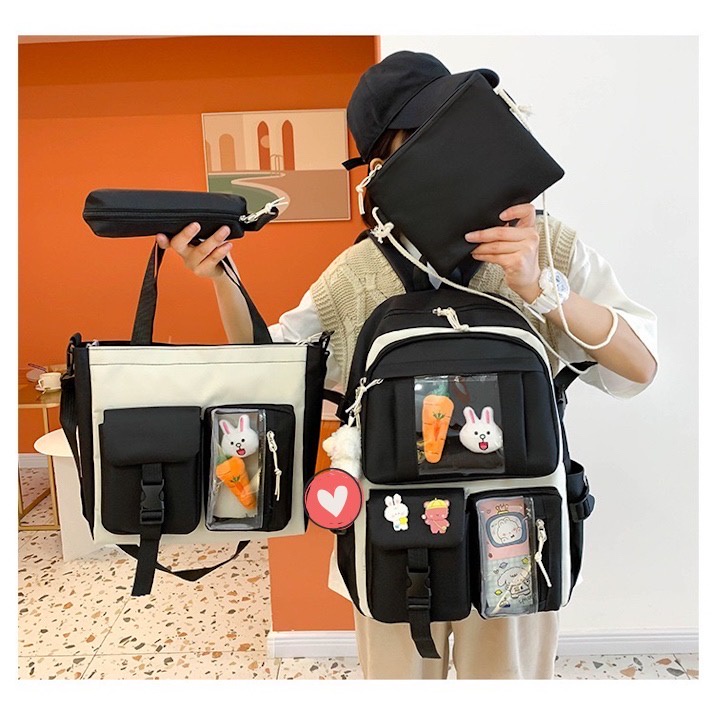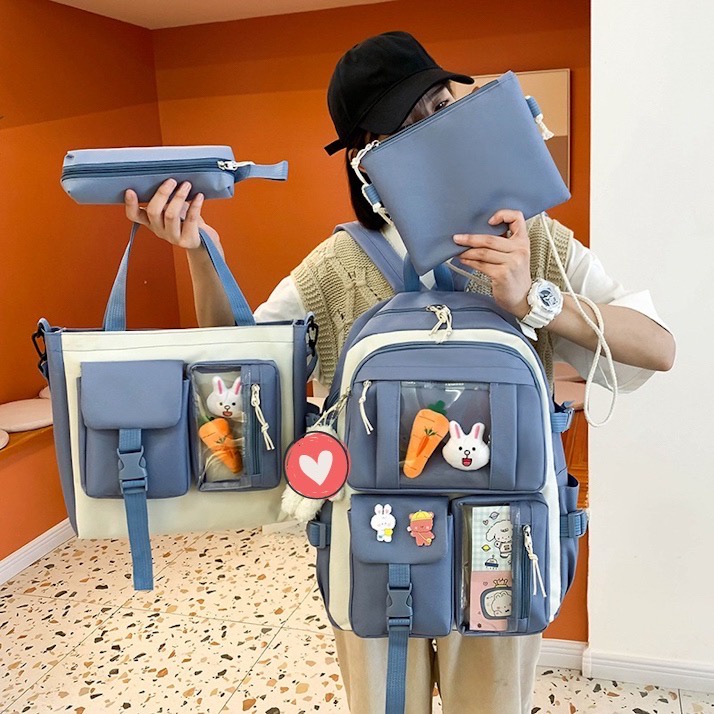 TAS RANSEL ANAK SEKOLAH perempuan IMPOR SET 4 IN 1 SD SMP SMA Fashion korea