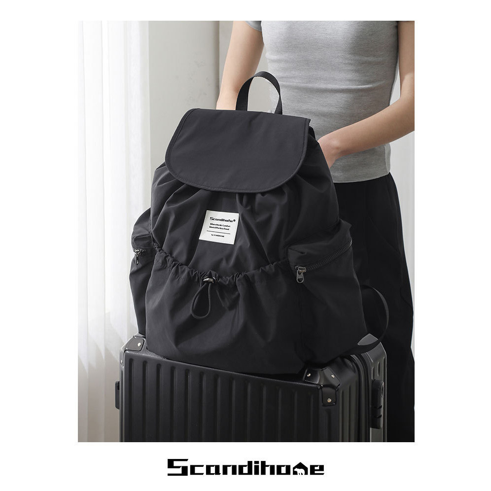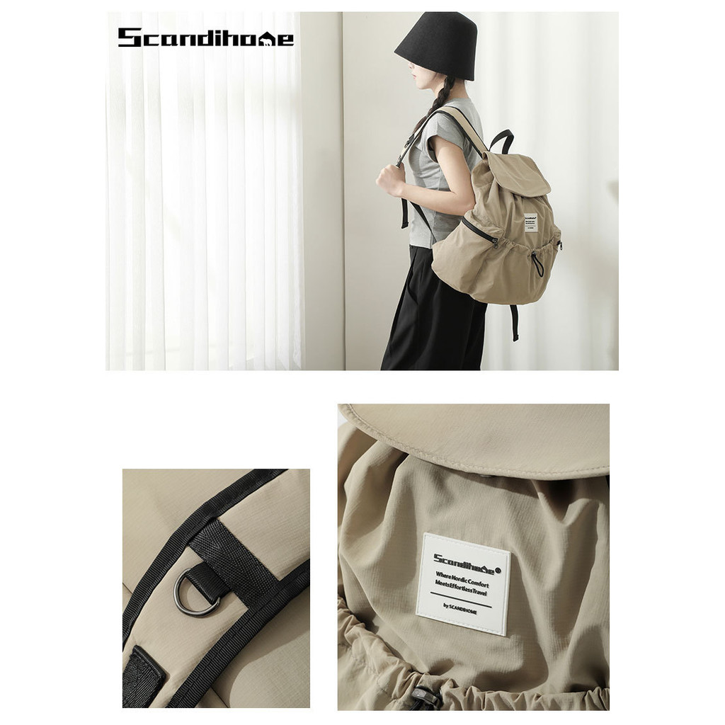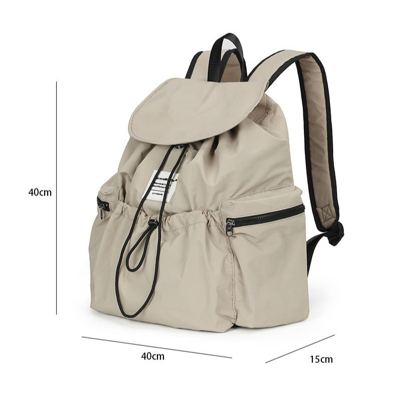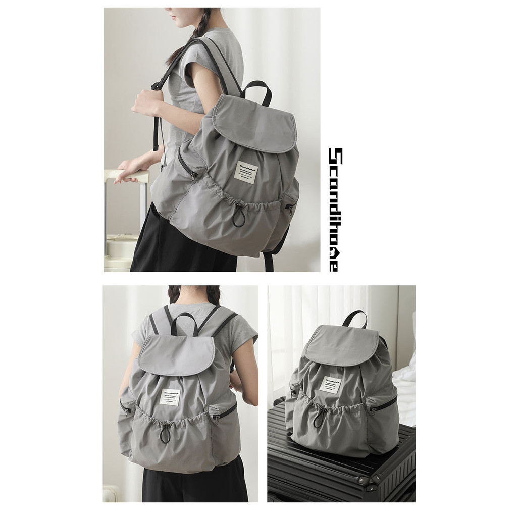 Tas Ransel Wanita Kecil Trendi dengan Tutup Flip-Top, Kapasitas Besar, Bahan Nylon dan Tali Tarik (Tas Sekolah/Mahasiswa