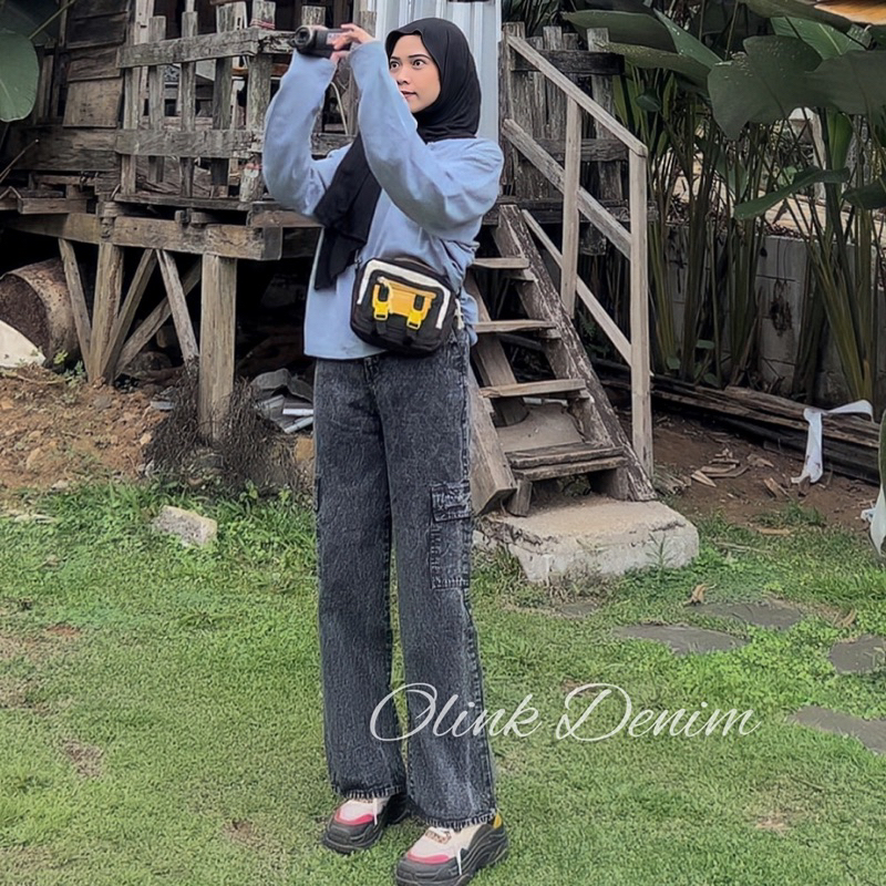 CELANA CARGO JEANS HIGHWAIST PANJANG WANITA KARGO CELANA KULOT KARGO JINS