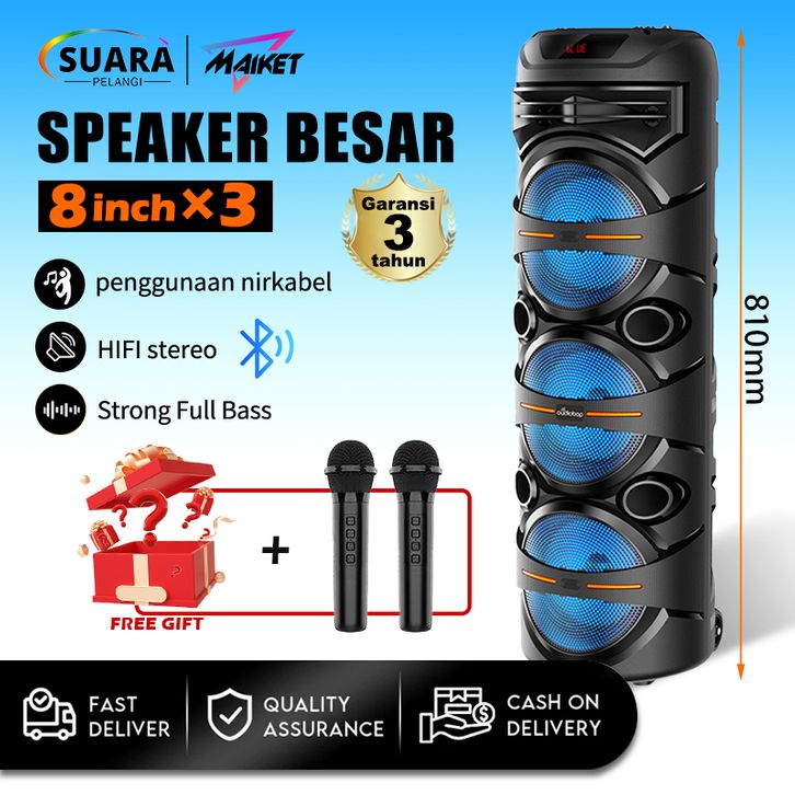Murah 【SUPER BASS】MAIKET Speaker jumbo Bluetooth Portabel Karaoke Besar Super Bass 8 Inch x3 Nirkabel Wireless 8333 Ker
