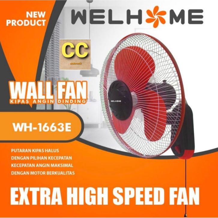 Welhome wall fan 16 inch / kipas angin dinding tembok WELHOME WH1663E 16" murah SNI