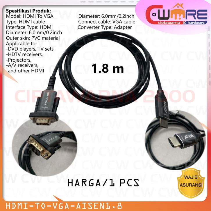 Kabel HDMI to VGA 1.8M HDTV Cable For TV DVD Full HD 1080p MFN