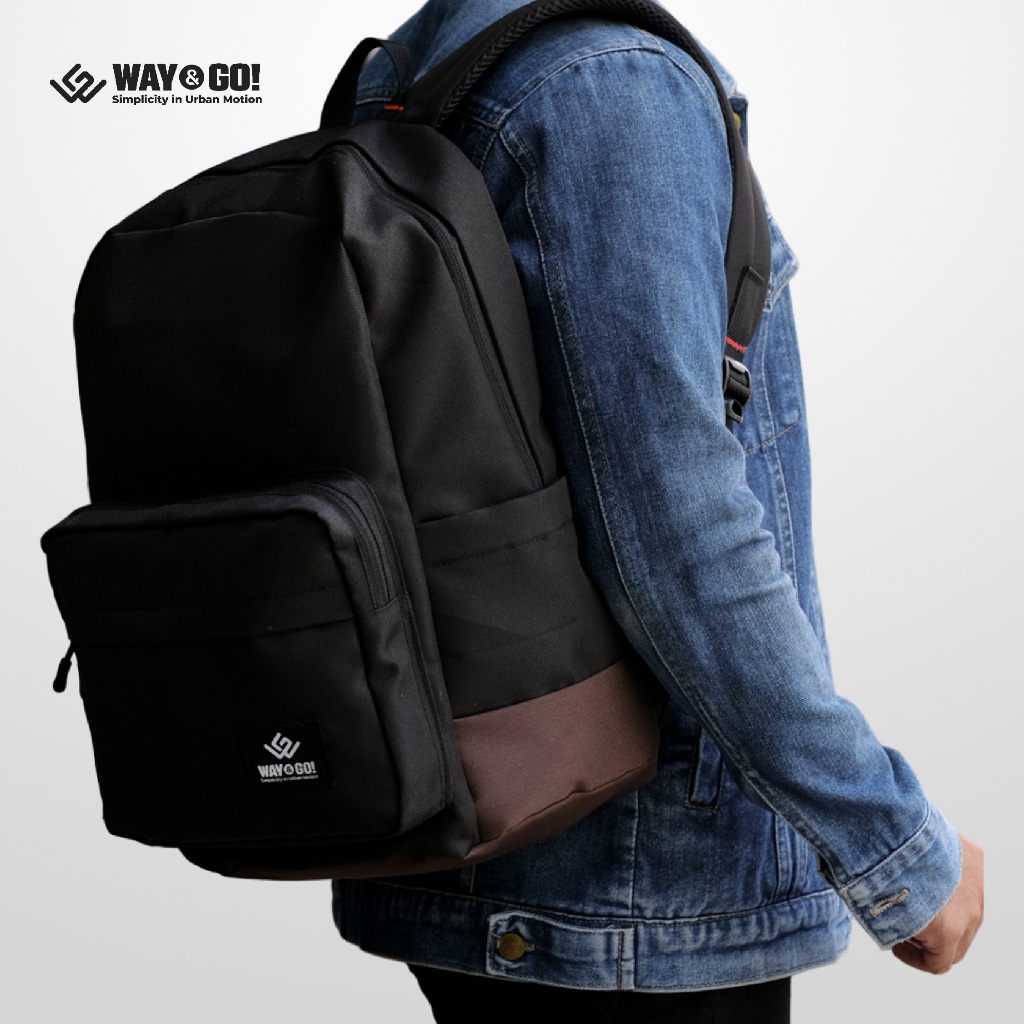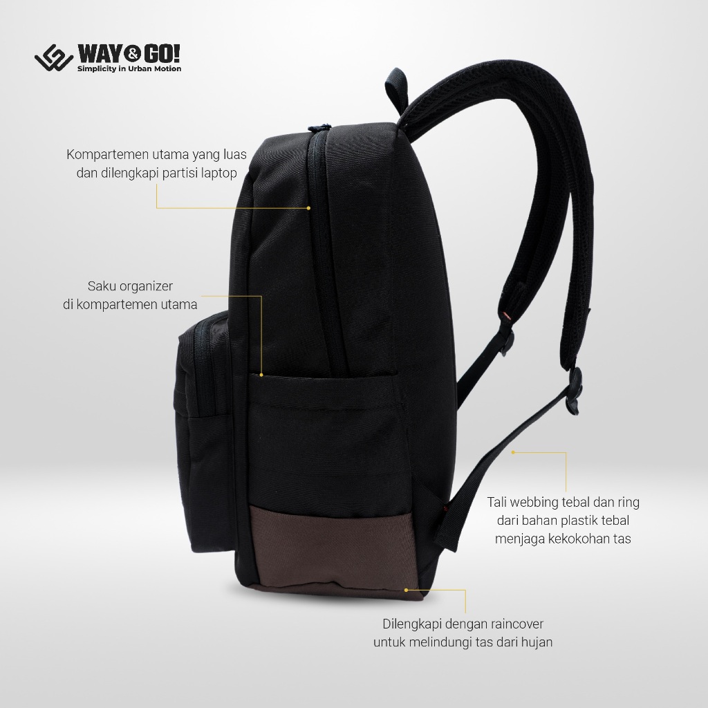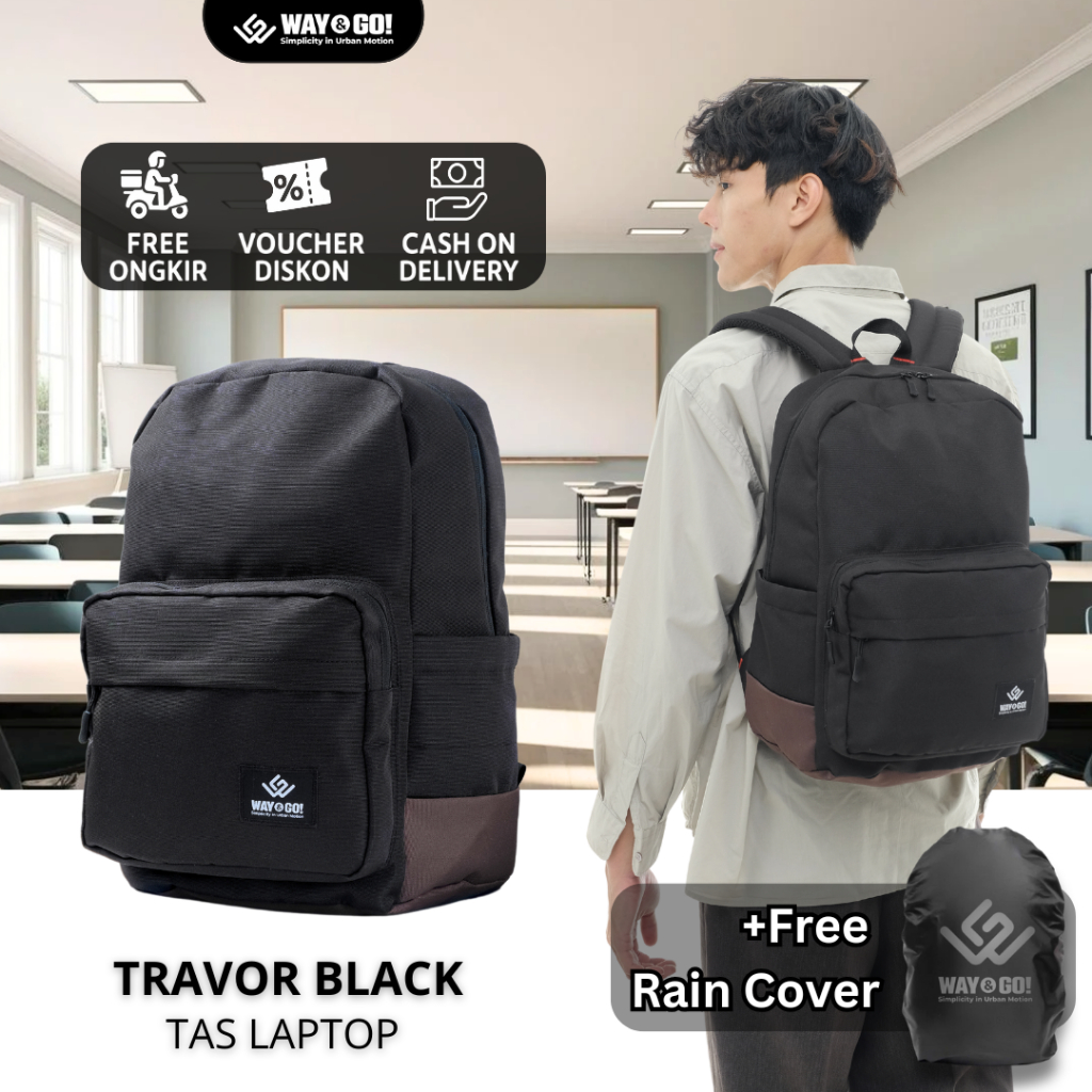 Way&Go! Travor Black Ransel Hitam Coklat | Backpack Laptop Simpel Stylish Sekolah, Kuliah, dan Kerja