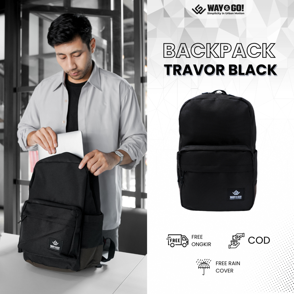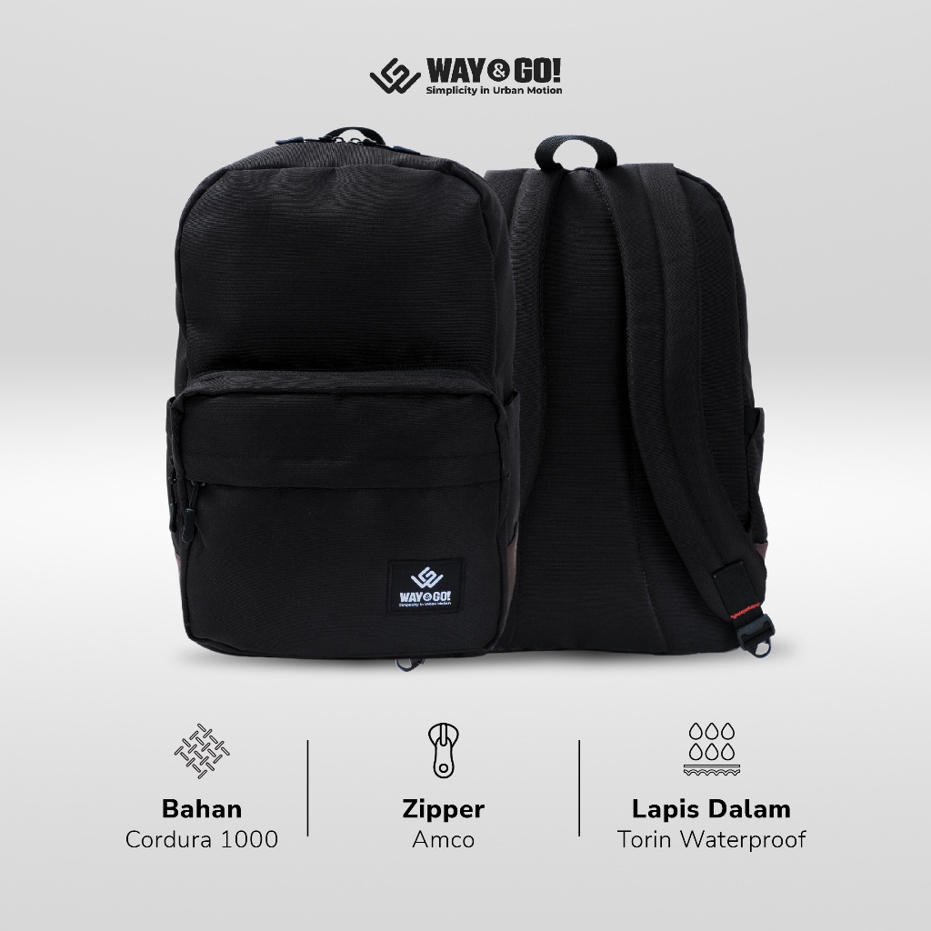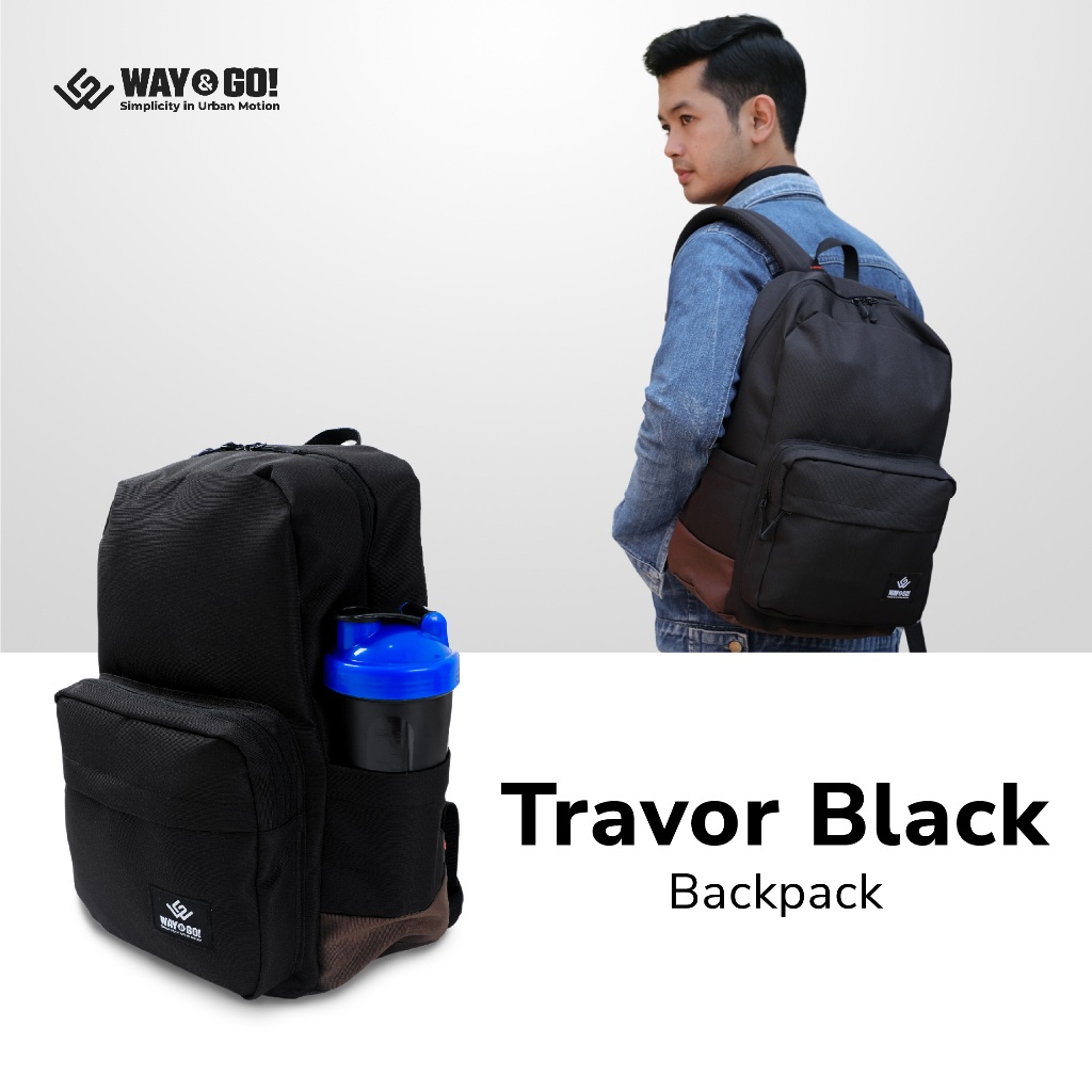 Way&Go! Travor Black Ransel Hitam Coklat | Backpack Laptop Simpel Stylish Sekolah, Kuliah, dan Kerja