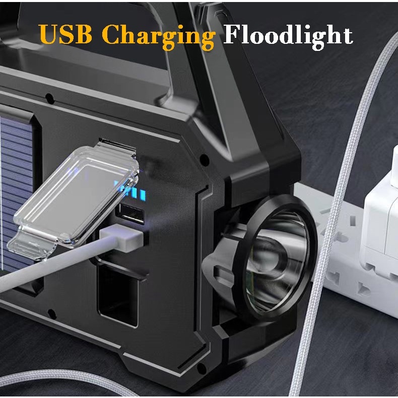 4 in 1【Garansi 10 tahun】Lampu Emergency LED Tahan Lama + Senter Solar Panel USB Charge Senter Surya LED Super Terang Jarak Jauh Senter Powerbank Flashlight