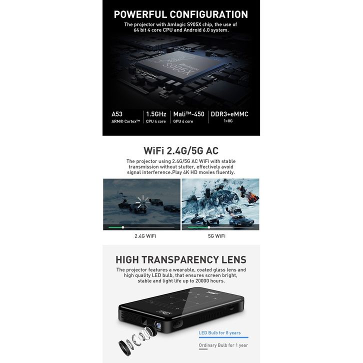 P09-II - Mini DLP Projector 4K HD 50ANSI Lumens - 1GB/8GB Version - Proyektor Mini Berteknologi DLP dengan TriP00D