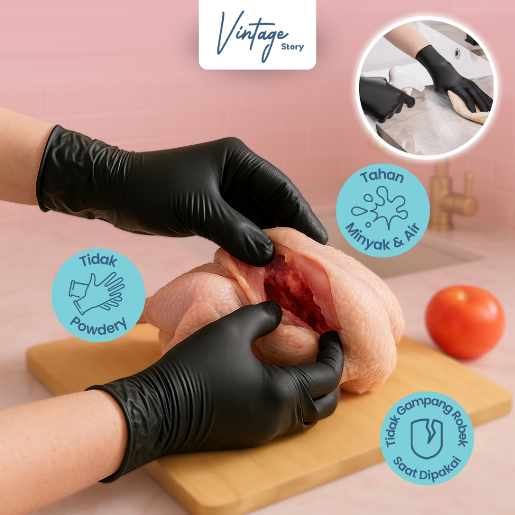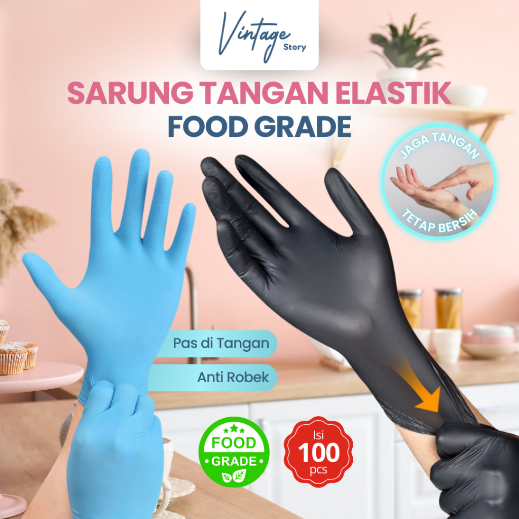 Sarung Tangan Masak Medis Karet Elastik Nitril Safe Hand Glove Hitam Biru Higienis Food Grade Sekali Pakai