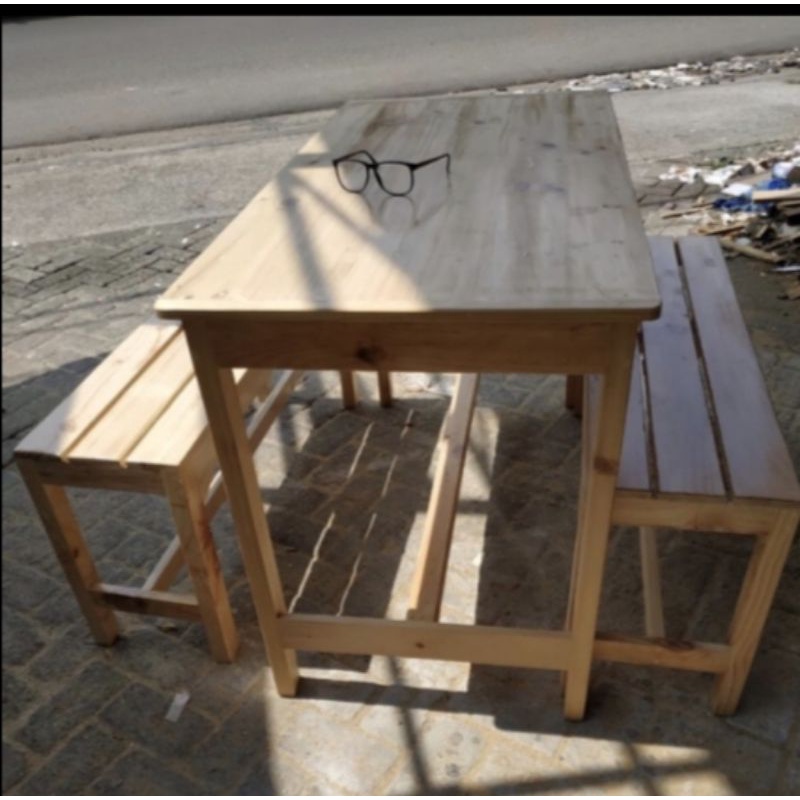 meja makan meja cafe meja resto 1meja 2 bangku panjang 100×50×75