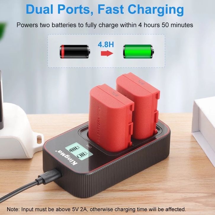 KingMa LCD Dual Charger & 2Pcs Baterai Canon LP-E6NH LP-E6 LPE6NH Battery 2000mAh - SKU 1.016.0251