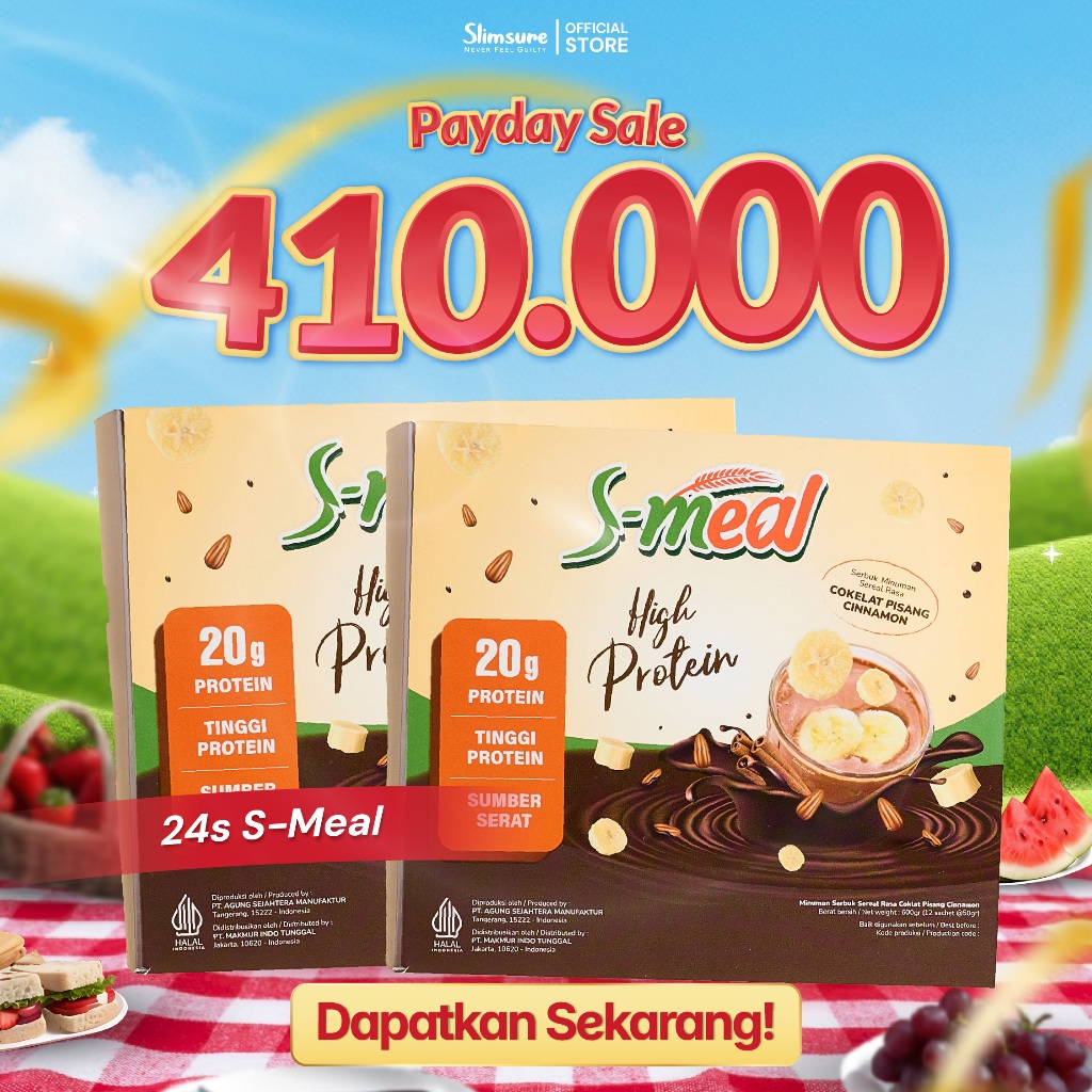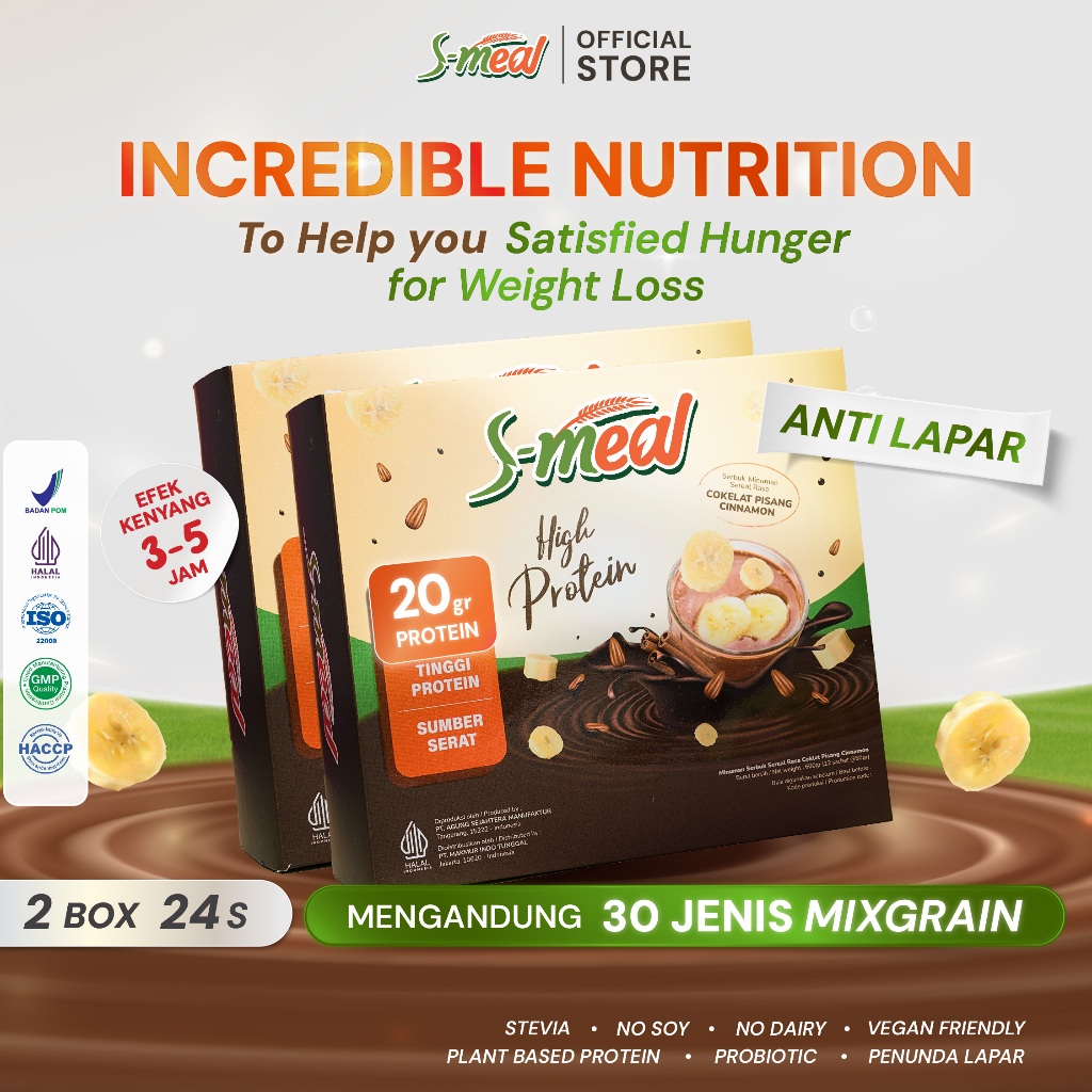 S Meal Chocolate Banana Cinnamon 2 Box - Super Food Shake | Tinggi Protein| Healthy Meal - SML12S