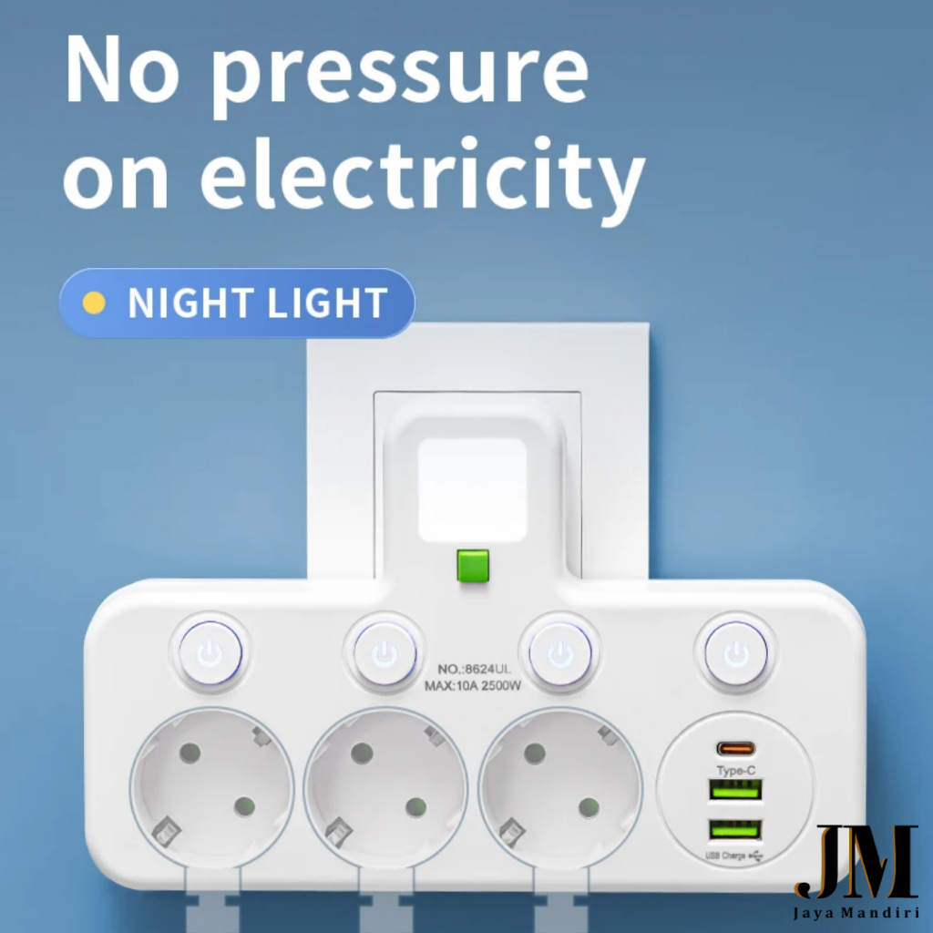 COLOKAN LISTRIK 2 3 4 LUBANG STOP KONTAK PORT USB DAN SAKLAR ADA LAMPU TIDUR 8623UL - 2926