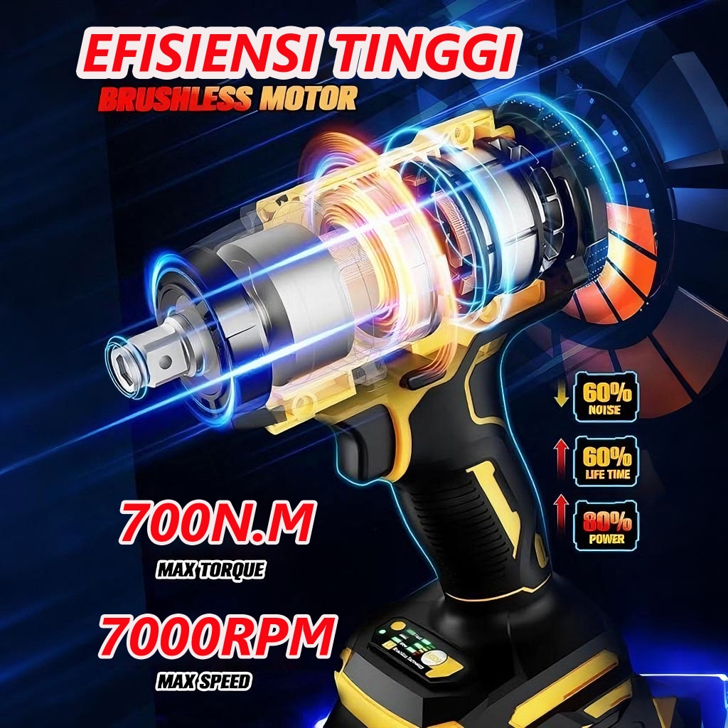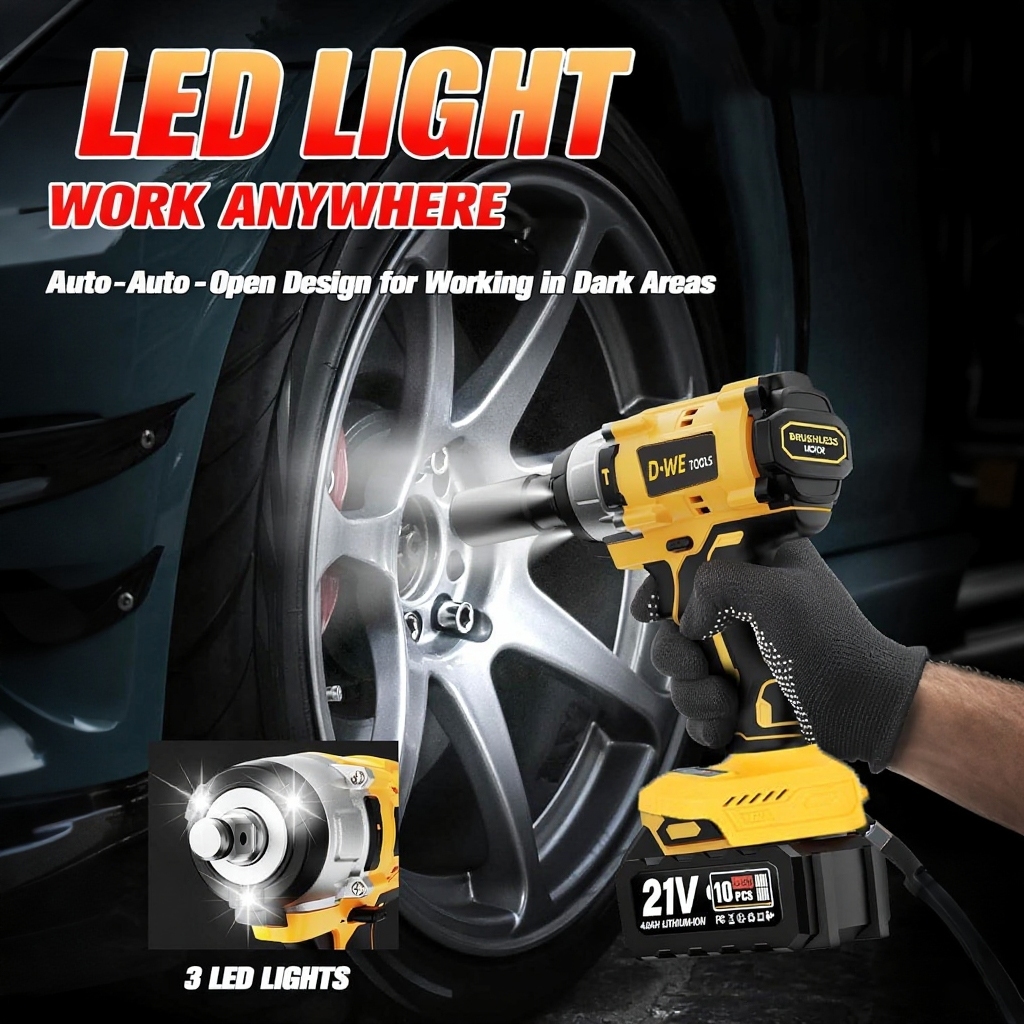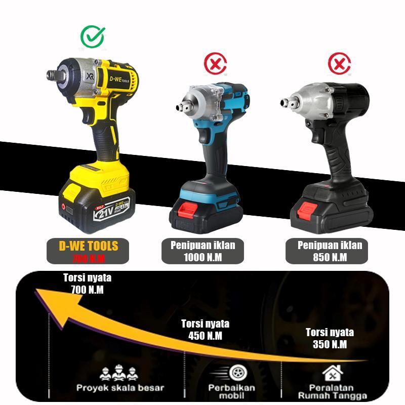 D-WE 3in1 Power Impact Wrench Baterai impact dengan Baterai 1/2 inci Cordless Impact Gun 21V Driver Impak Ringan untuk Mobil, Rumah,