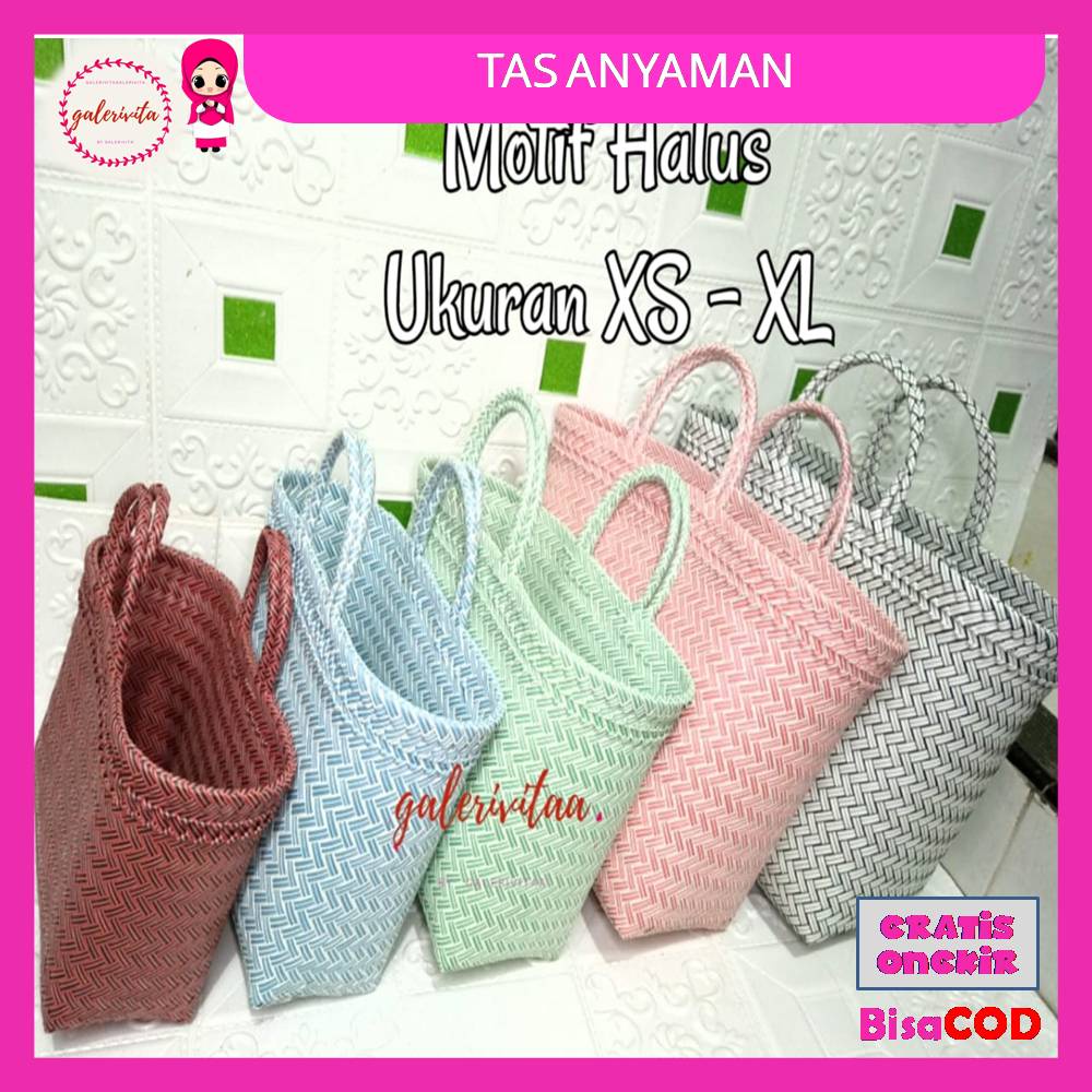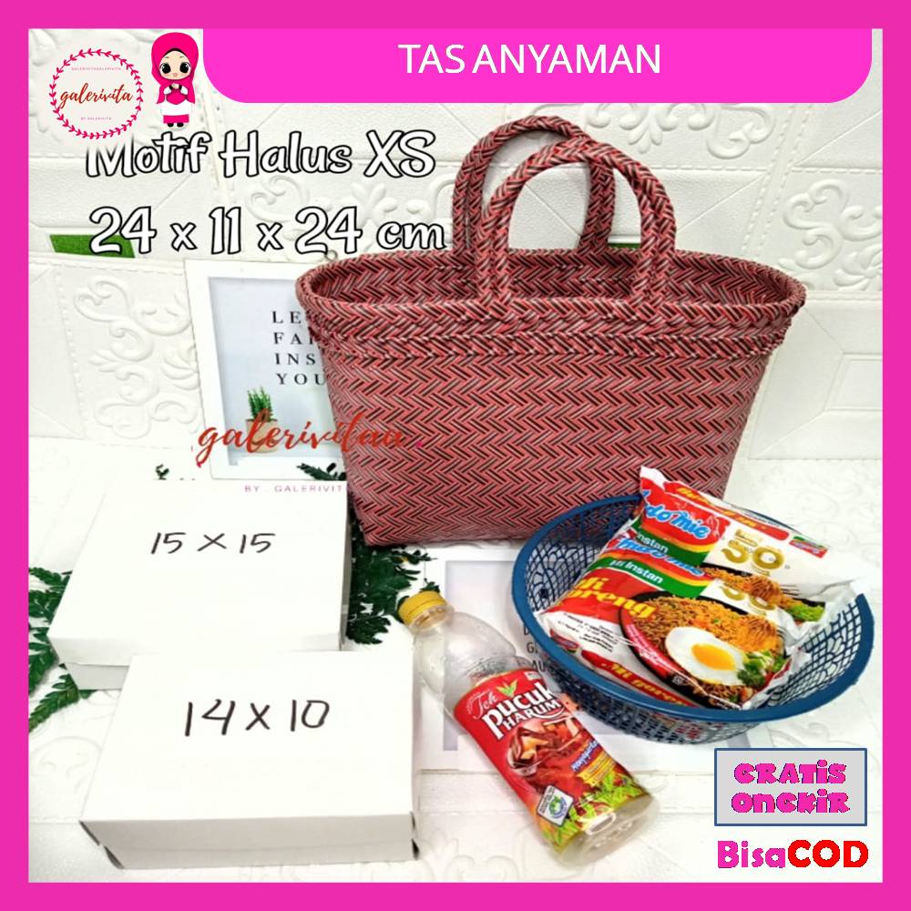 Tas Anyam Plastik Motif Halus Ukuran XS S M L XL / Tas Belanja / Tas Anyaman / Tas Berkat Hajatan Souvenir
