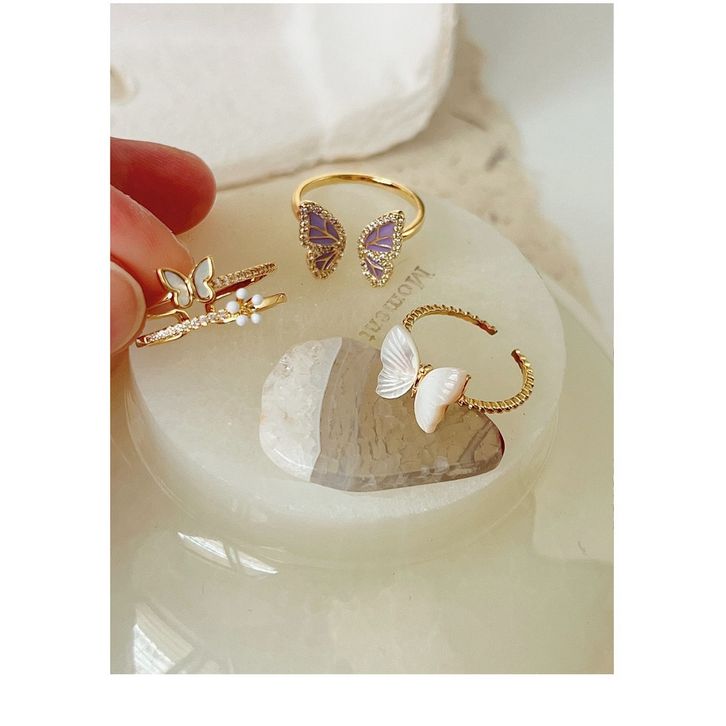 Cincin Perhasan Wanita Elegan Ring Fashion Model Korea Alloy Desain Kupu Kupu Hias Oval Berlian Imitasimutiara Untuk Wan