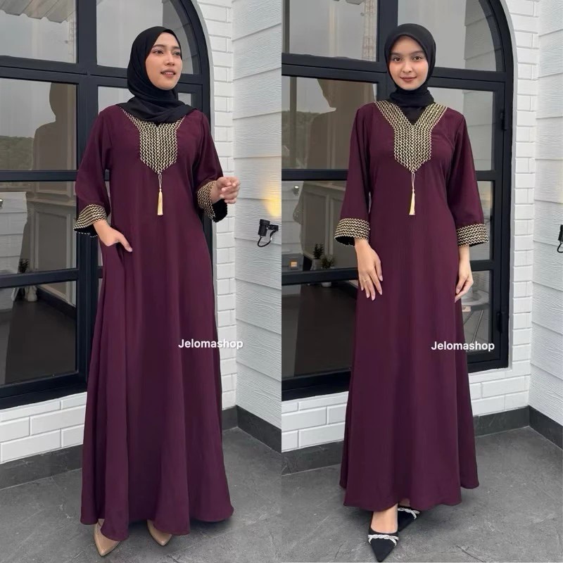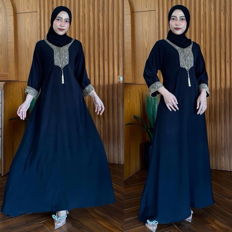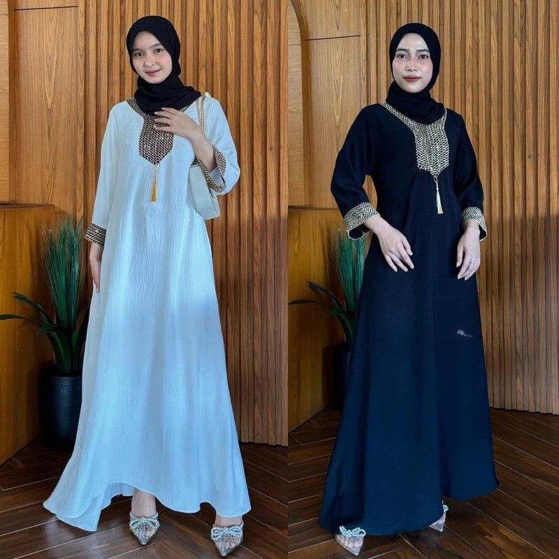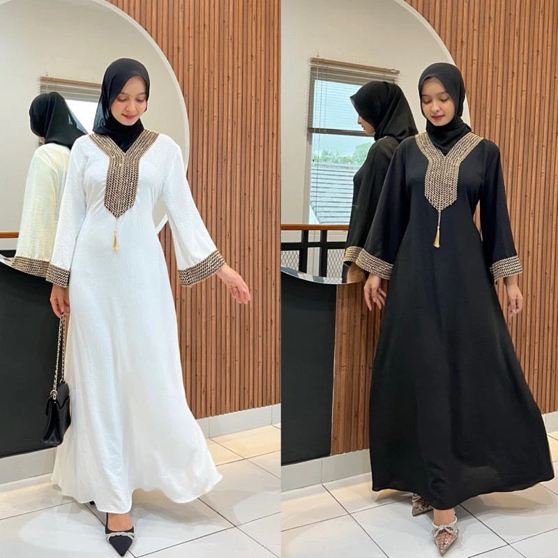 Abaya Humaira Turkey Gamis Remaja Terbaru 2025 Wanita Crinkle Luxury Premium Hitam - Muslim Dress
