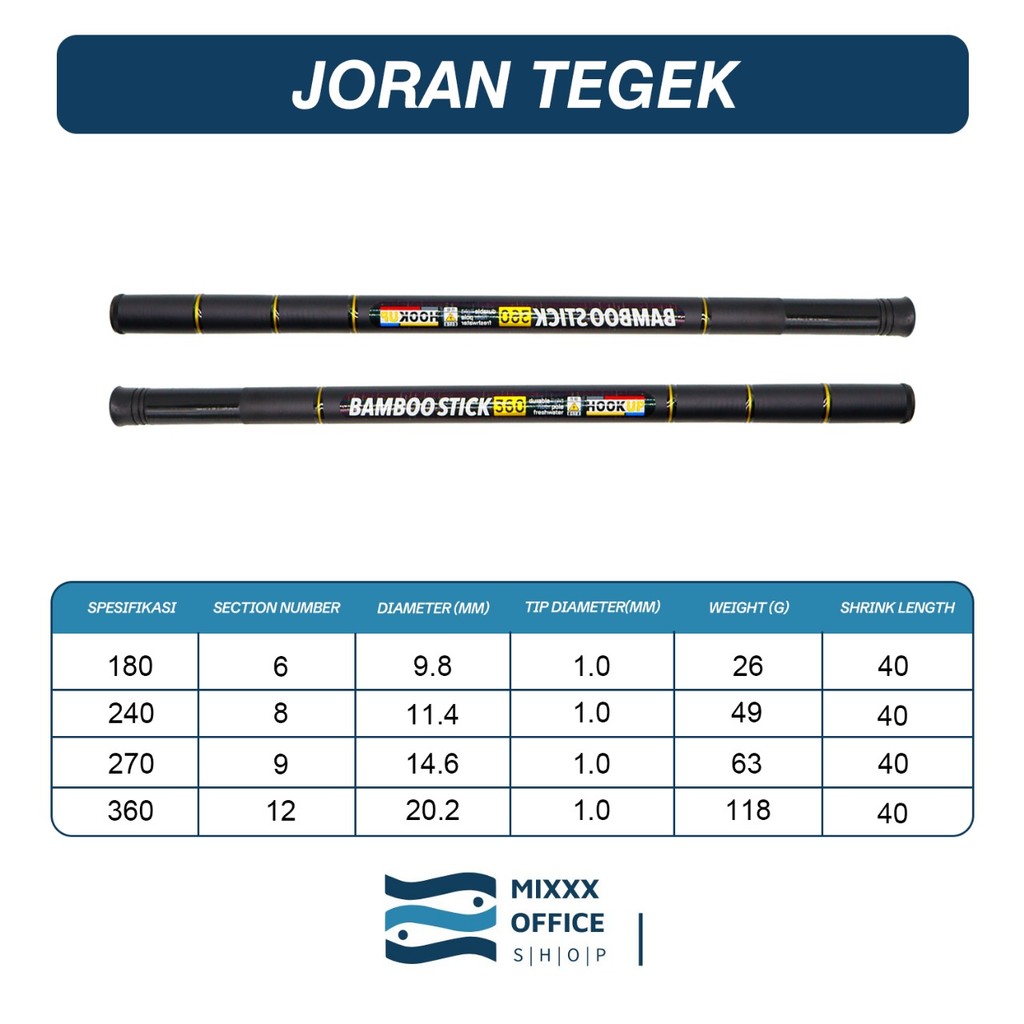 MIXXX Joran Tegek Ukuran 1.8M - 3.6M Super Portabel BAMBOO STICK Ready