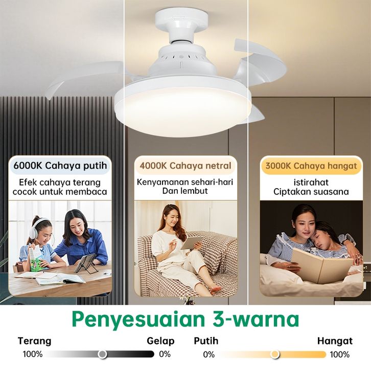 NEW Arrival Lampu Kipas Angin Plafon 48W 2in1 Lampu Kipas Angin LED E27 Multifungsi Dengan Peredupan 3 Warna