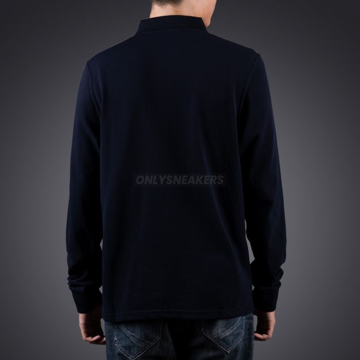 FRED PERRY PLAIN COLLAR LOGO POLO NAVY WHITE LONG SLEEVE